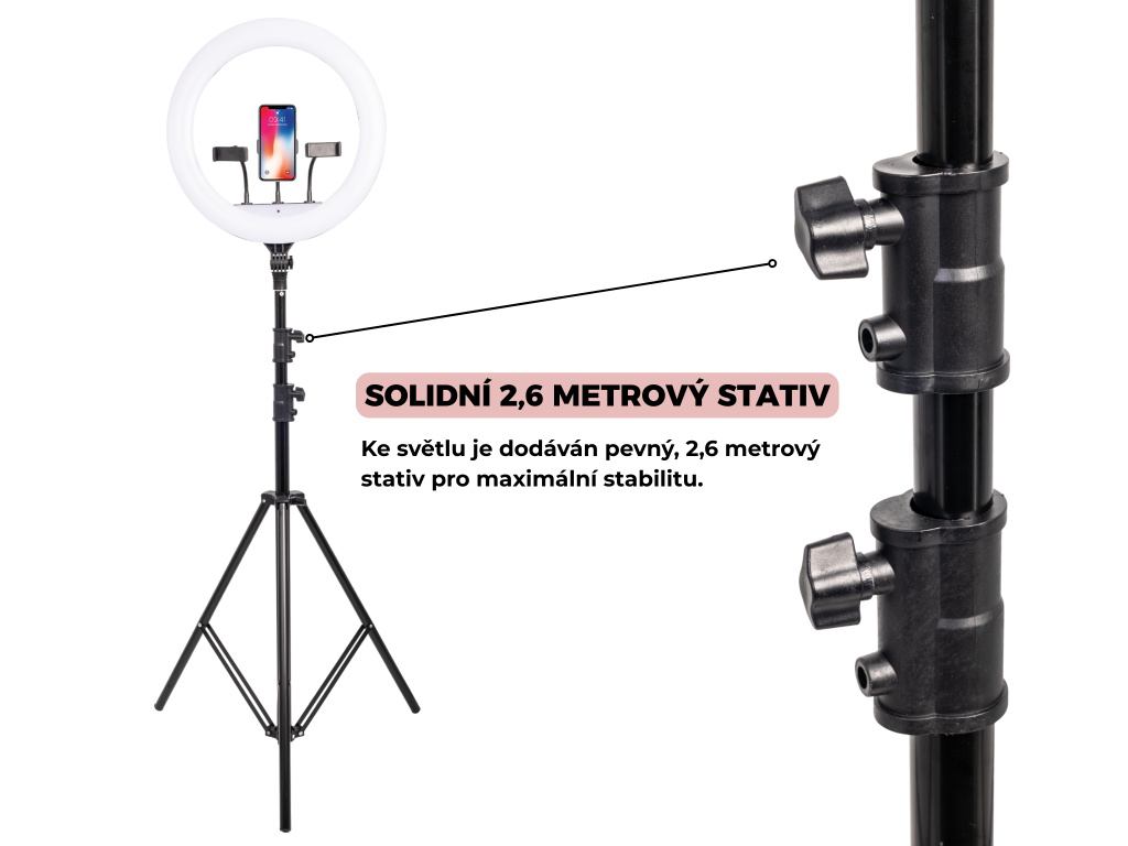 | 1) Kreisförmige LED-Leuchte + Stativ 2,6 Meter | |