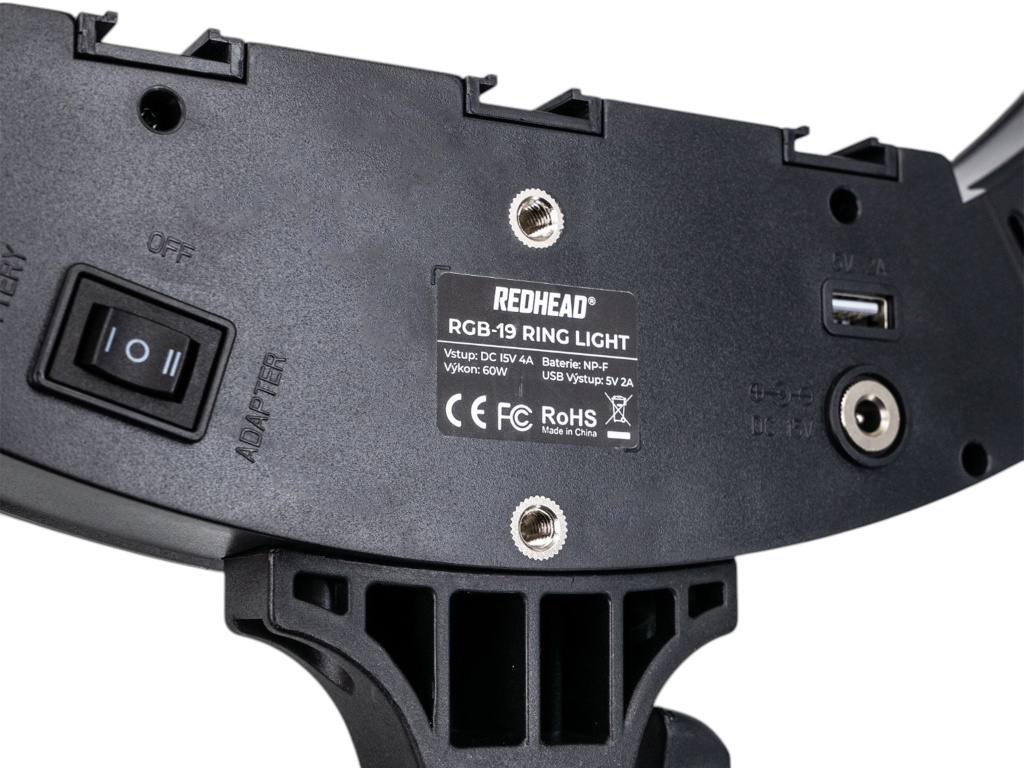 Professionelles 19" Ringlicht mit RGB, LCD Display + Spiegel mit Halterung für Kameras und Camcorder 60W, 4800 lumenů, 3200-5600K, RGB režim
