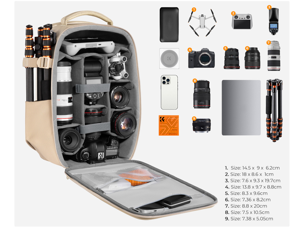 KF Concept Multifunktionaler Fotorucksack mit Hartschalenetui 22L (khaki) KF13.134V1