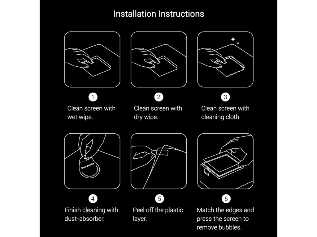 Hinweis: Um Staub und Blasen zu vermeiden, ist die Schutzfolie etwas kleiner als der LCD-Bildschirm.