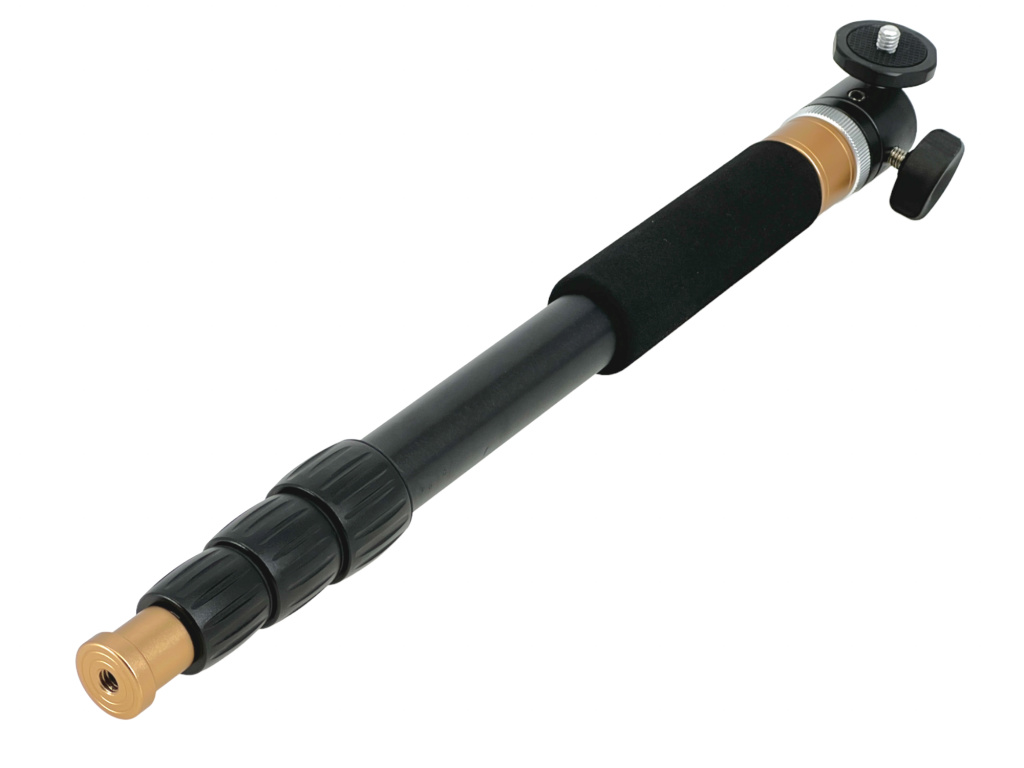 Der hochwertige Selfie-Stick aus Aluminium ist speziell in seiner Verarbeitung. Er besteht aus 4 Teilen, so dass keine Gefahr besteht, dass sich die Stange verbiegt. Die Tragfähigkeit beträgt ca. 2 kg, wobei der Selfie-Stick mit einer Kamera mit 1/4"-Gewinde verwendet werden kann (1/4"-Schraube ist das Ende des Kopfes selbst) und bei Bedarf kann ein adapter für GoPro, oder jede mobile Halterung für ein Smartphone.