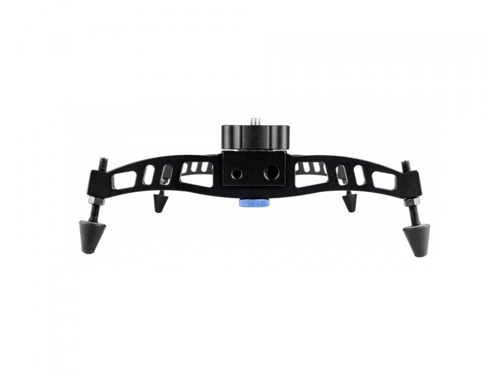 Die Schiene ist aus stabilem Aluminium gefertigt. Der Schieber verfügt über Befestigungsgewinde (1/4" und 3/8") an den Enden und in der Mitte, so dass der Schieber bequem an einem Stativ befestigt werden kann. An den Enden befindet sich außerdem ein Gewinde zum Anbringen der mitgelieferten Messer. Die Füße können problemlos entfernt werden.