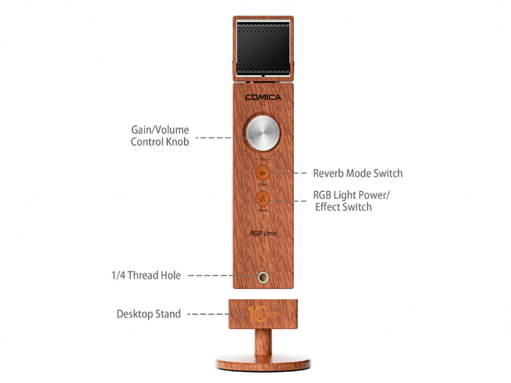 Sie können das Mikrofon auf einen stoßfesten und rutschfesten Tischständer stellen oder es auf einem robusten und langlebigen Galgenarm mit 1/4-Gewindebohrung und Stativ installieren. Spezielles Design mit Holztextur, schöner und großzügiger.