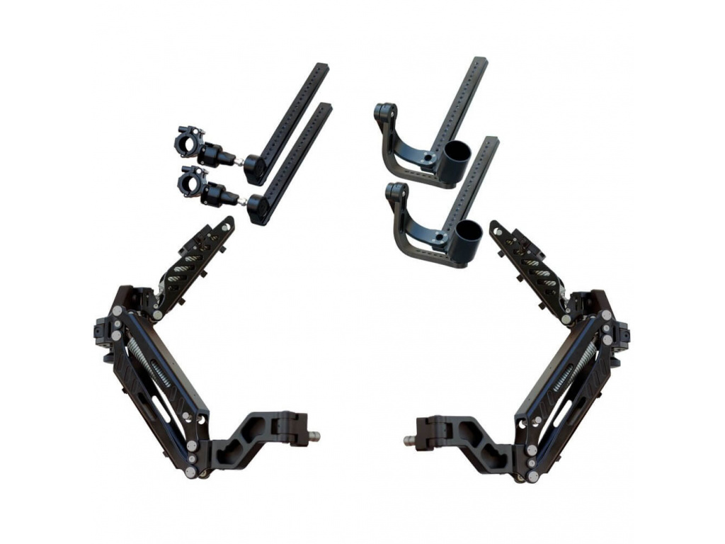 | Der Bausatz enthält zwei Arten von Kardanhaltern. Der erste ist für Ronin Gimbals von DJI konzipiert. Die zweite ist für Gimbals mit Dual Mount konzipiert, das Montagesystem ist durch eine Klemme gelöst. Die Arme geben Ihnen völlige Freiheit, die Struktur zu halten, so dass Sie alle Kamerafunktionen leicht bedienen können, ohne die gesamte Struktur halten zu müssen. | ||||