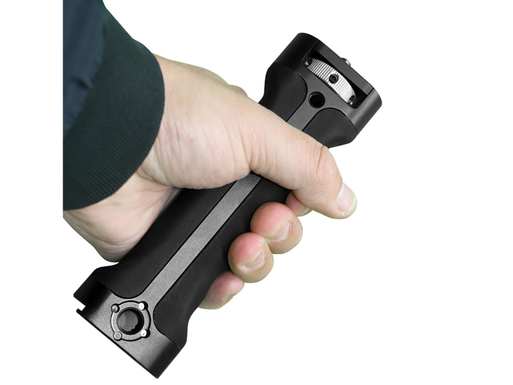 Vollgummierter Griff für Gimbals verschiedener Hersteller. Enthält eine 1/4"-Halterung mit versenkbaren ARRI-Lokalisierungsstiften. Universelle Lösung, über Reduzierung verwendet werden kann auf Standard 3/8" Gewinde.