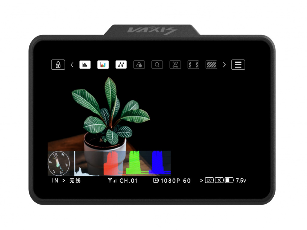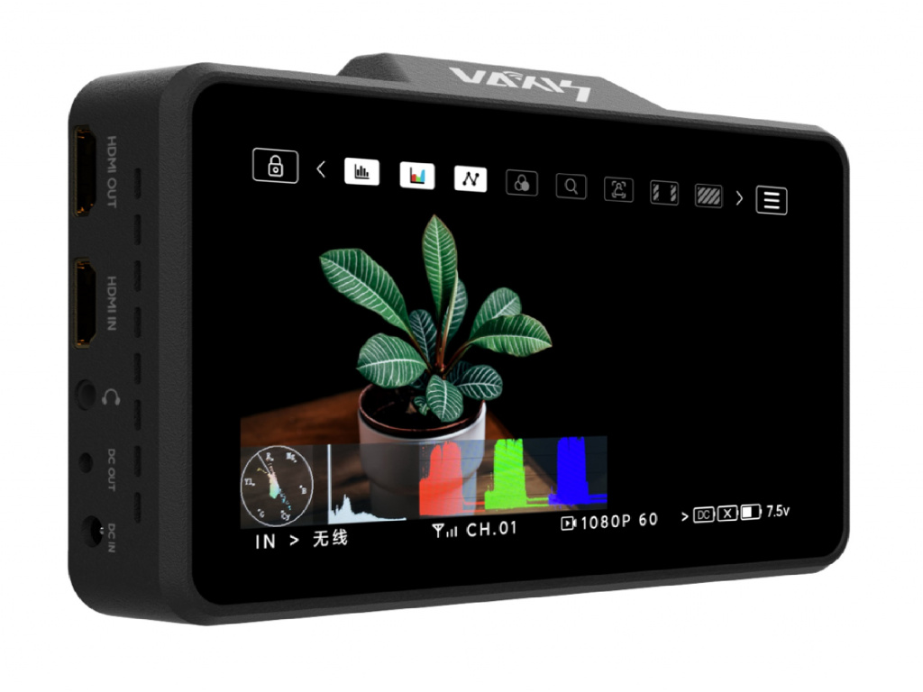 Dieser Monitor/Empfänger ist mit den Sendern Vaxis Atom A5H, Atom 500 HDMI/SDI und Atom 600 KV kompatibel und unterstützt den HDMI-Eingang und die Videoübertragung mit einer Auflösung von bis zu 1.080p60 über eine Entfernung von bis zu 160 Metern und kann über den HDMI-Loop-Ausgang auch Durchgangsvideos liefern. Der Sender kann ein Videosignal sowohl an den Empfänger als auch an drei mobile Apps zur gleichzeitigen Überwachung senden. Das Atom A5H eignet sich sowohl für die Überwachung als auch für die seitliche Fokussierung und verfügt über ein Display mit einer Helligkeit von 1.000 cd/m², das auch für den Außeneinsatz geeignet ist.
