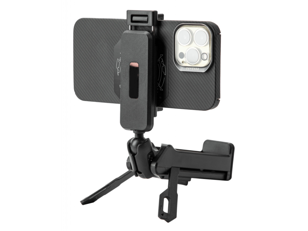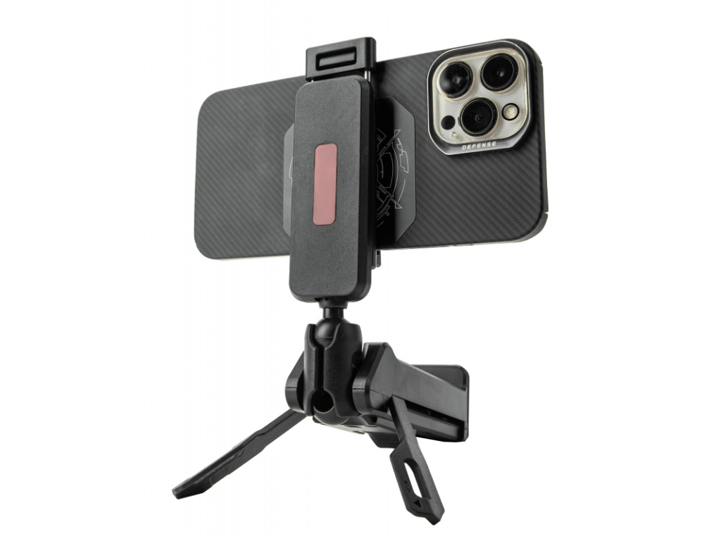 - dvě výklopné nohy – možnost přeměnit držák na stabilní stolní mini stativ