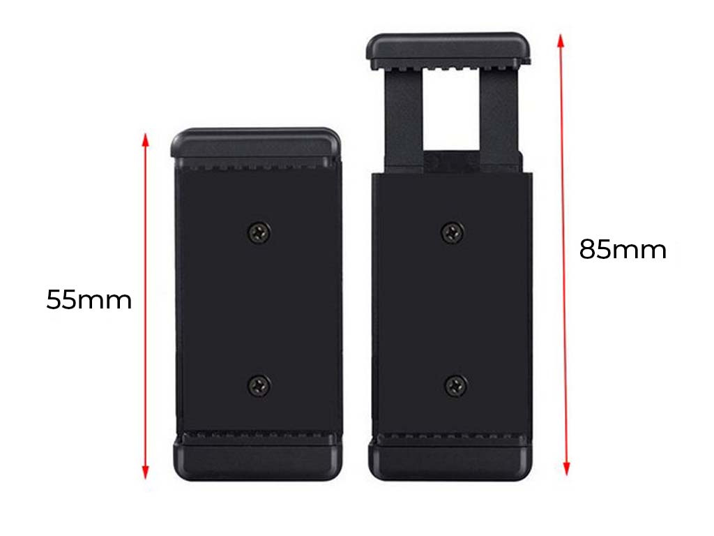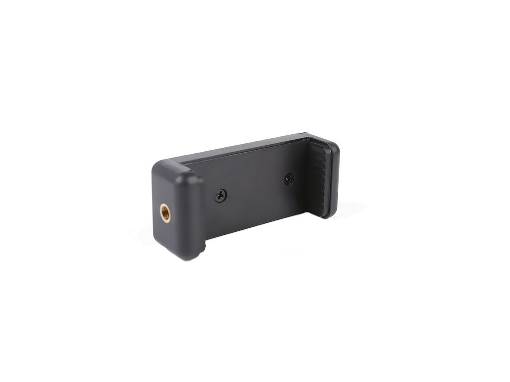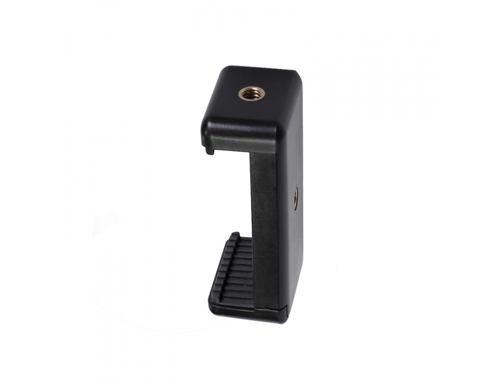 Standardní držák pro smartphony s 1/4" kamerovým závitem. Spodní a zadní část držáku obsahuje standardní 1/4" kamerový závit pro upevnění k dalšímu příslušenství. Držák je vhodný pro smartphony s výškou od 55 mm do 85 mm. Držák je universální a lze jej využít pro připevnění na jakékoliv příslušenství, kde figuruje 1/4" kamerový šroub.