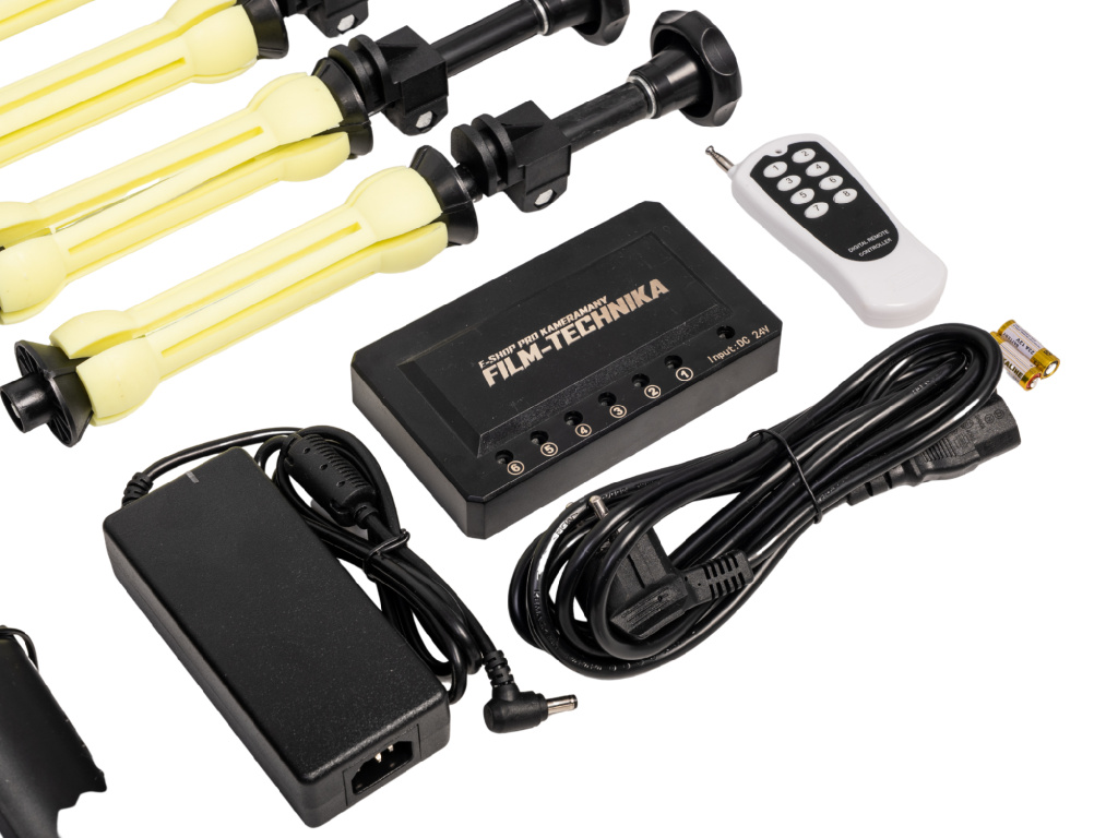 Tato motorizovaná elektrická sada pohonu pozadí může řídit 4 role papíru nebo látky na pozadí. Celu konstrukce lze snadno upevnit na stativy, nebo konstrukci připevnit do zdi, nebo ke stropu. Dálkové ovládání je funkční v rozsahu 15 m, takže nemusíte ručně pokaždé chodit k výměně pozadí, motorizované válce to udělají pohotově a opatrně za vás.