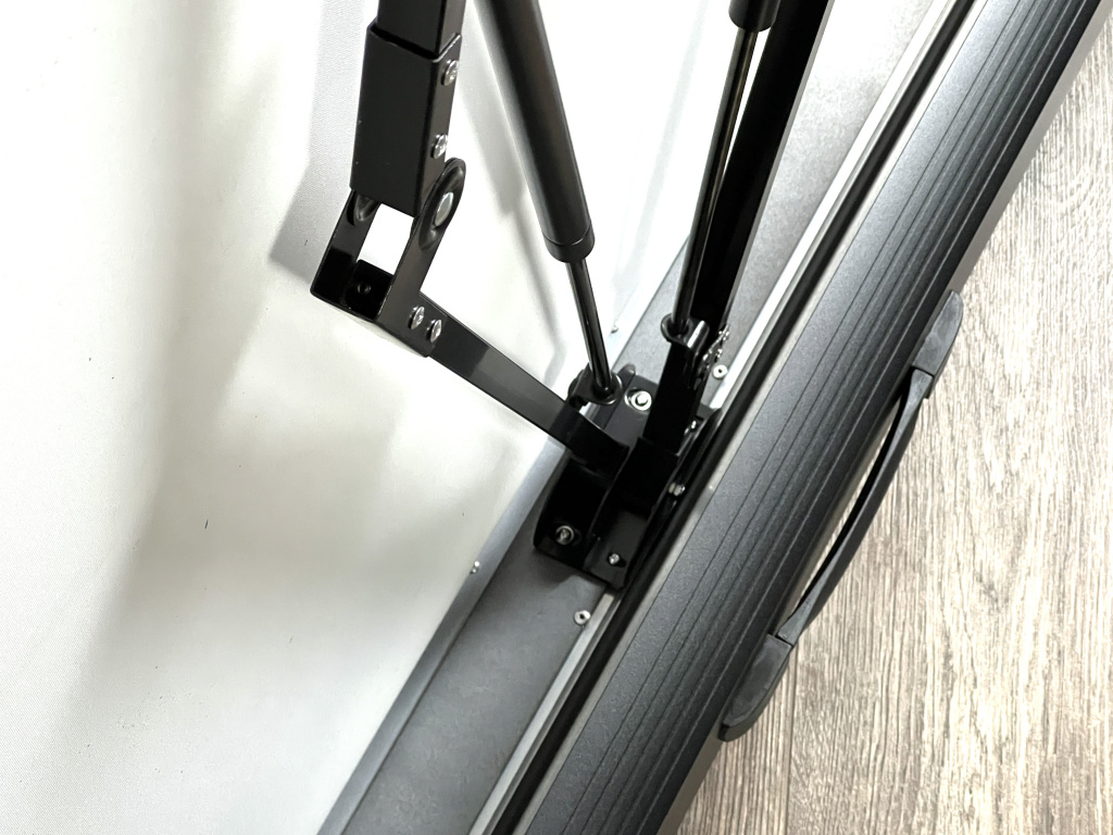 Pozor - tato sada obsahuje profesionální pružinový systém skládání, složení tak trvá vteřiny a plátno je krásně rovné. Díky tomu celé sestavaní oproti konkurenčním modelům trvá složit pouhých 10 vteřin. Standardně se používá tyčový systém, kdy musíte komplikovaně nasazovat tyče za plátno a povrch pak není tak rovný, jako je prezentováno na fotkách. Námi dodávané řešení je se speciálním, složitým mechanismem, který dokonale roztáhne plátno.