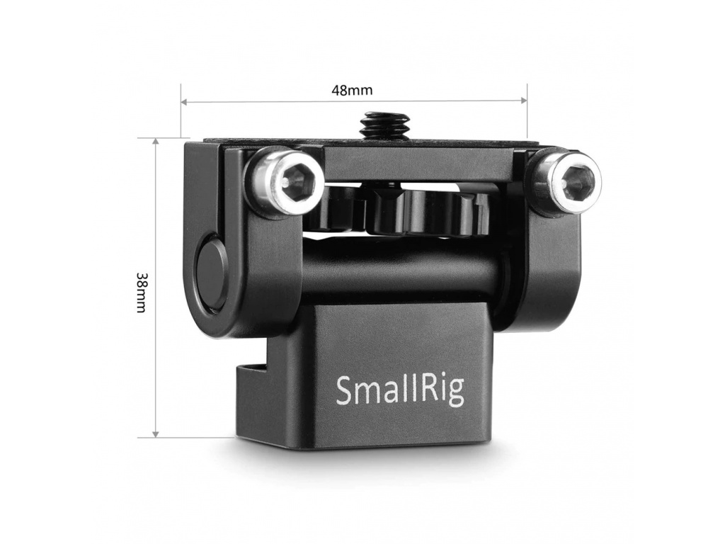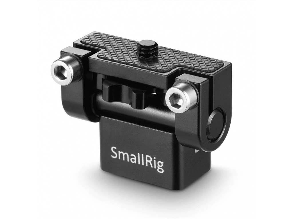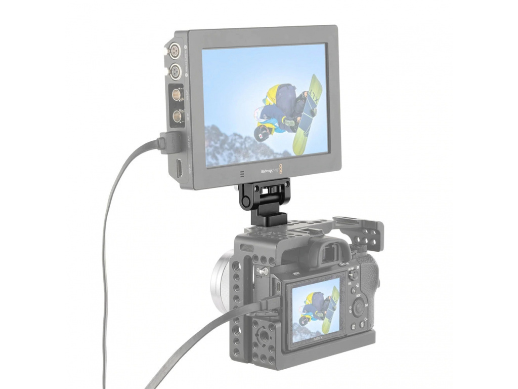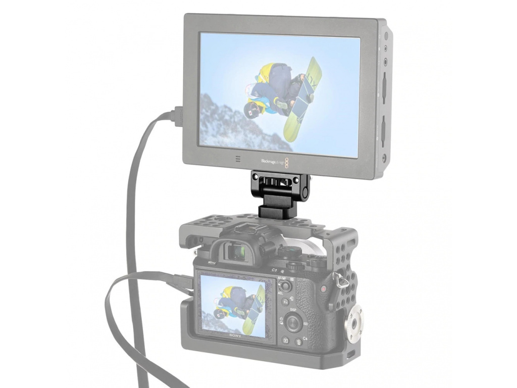 Kompaktní držák 1842 pro externí náhledové monitory a další příslušenství s 1/4" závitem. Držák má nosnost 1,5 kg, takže na něj lze připevnit jakékoliv příslušenství od mikrofonu až po rekordéry. Montáž se provádí pomocí dvou 1/4" šroubu, takže jej můžete upevnit na většinu SmallRig klecí, Cheese plate destičky, apd. Nechybí ani nastavení úhlu v rozmezí 180°.