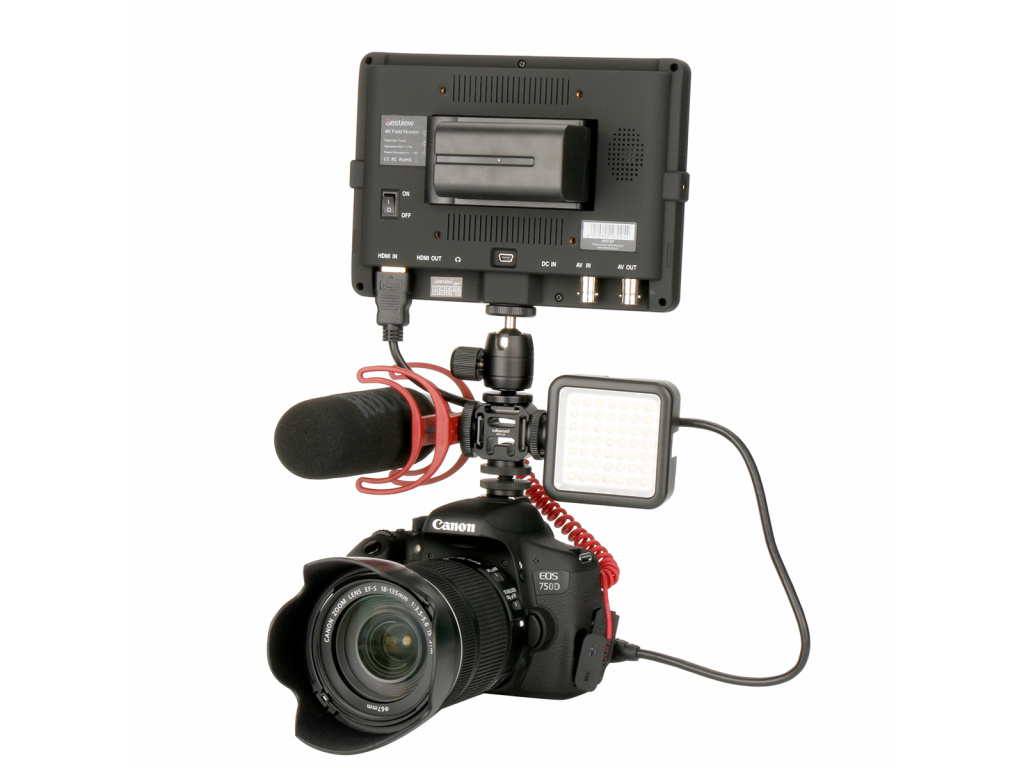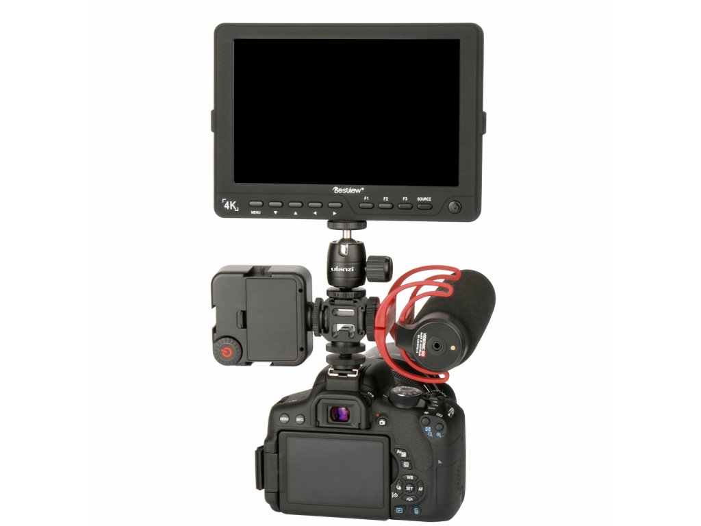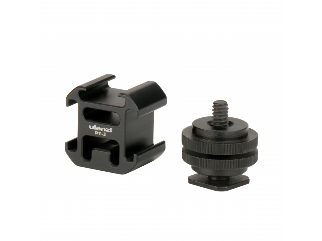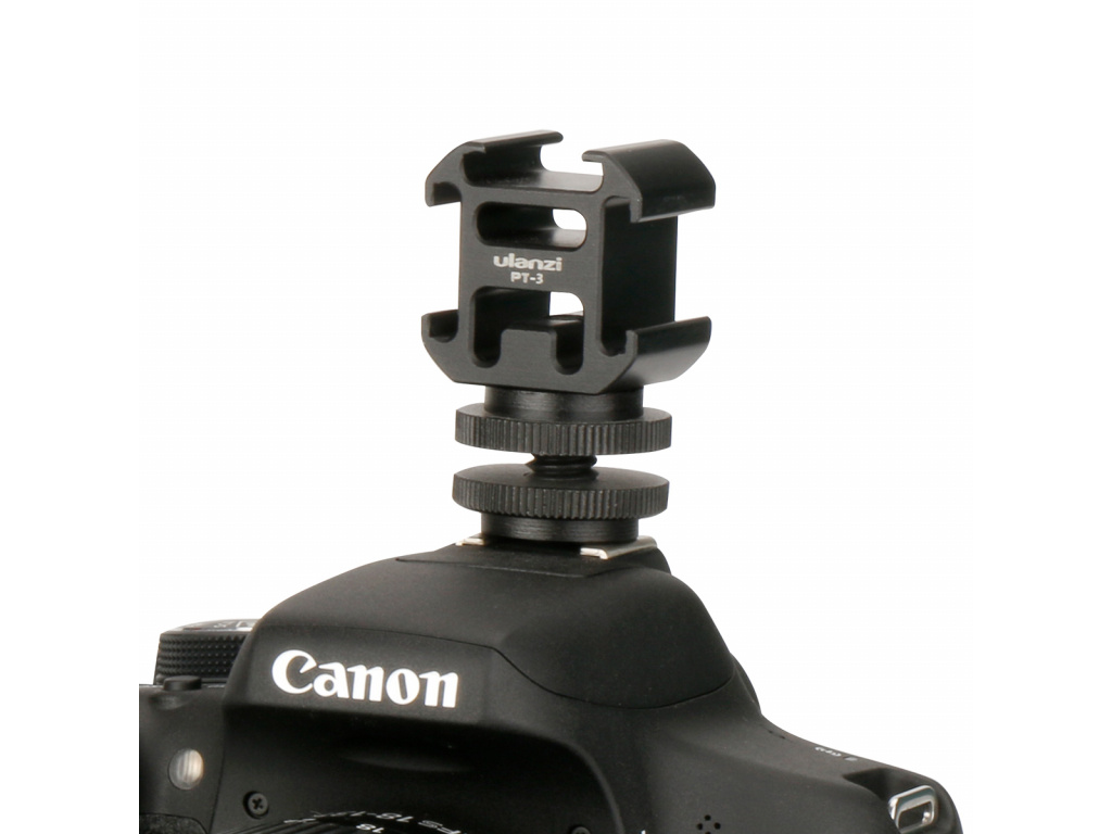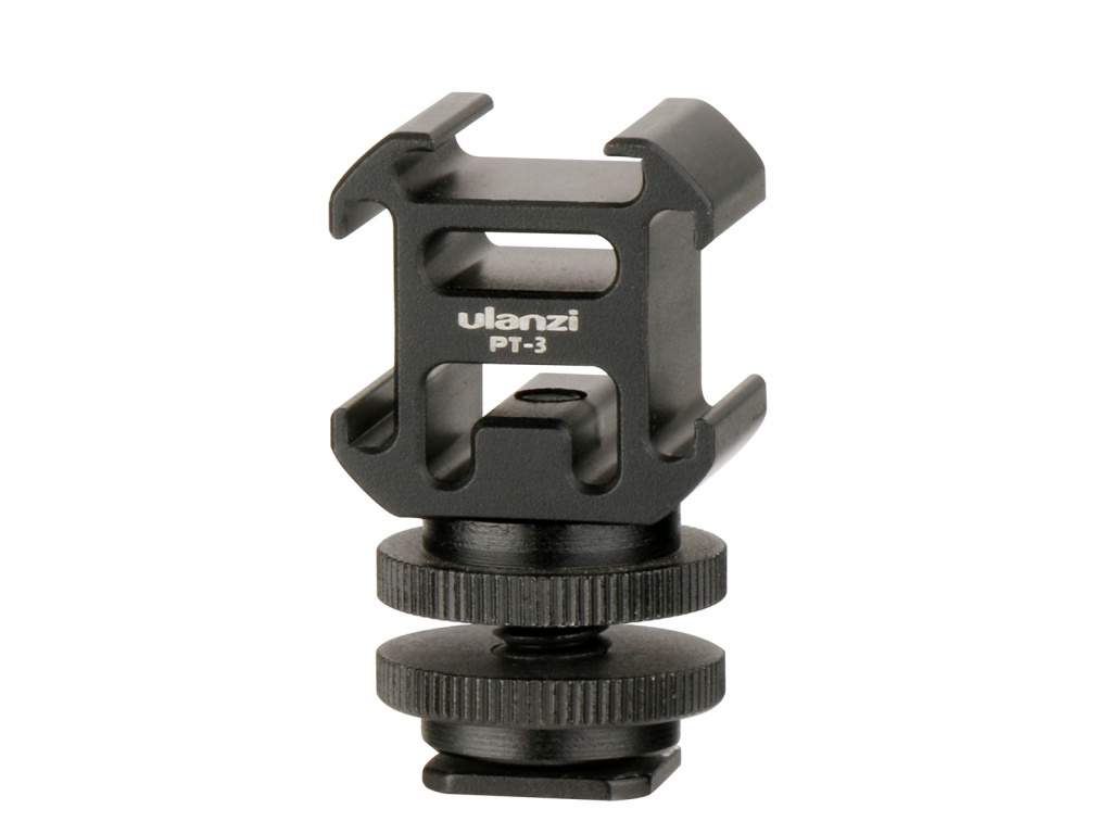 Universální držák pro různé typy kamer, disponuje jedním "hot shoe" - sáňky(samec) upevněním, včetně 1/4" závitu a zámku, a třemi "cold shoe" - sáňky(samice) upevněními pro rychlou a bezpečnou montáž externího příslušenství jako: mikrofon, LED světlo, audio rekordér a dalšího vybavení.