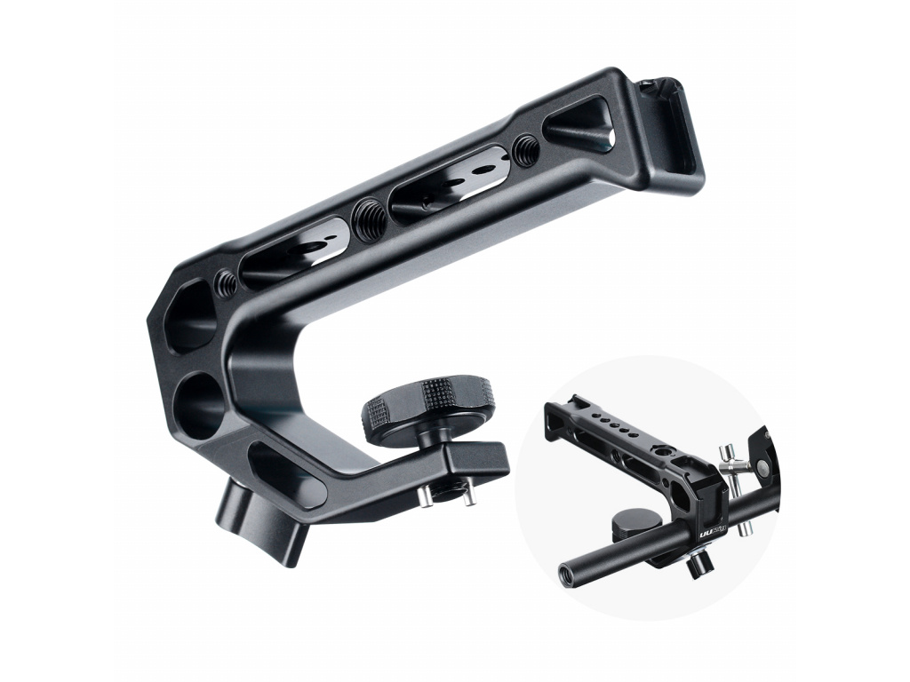 Universální horní rukojeť pro kamerové klece. Rukojeť upevníte do klasického 1/4" závitu. Rukojeť nabízí řadu možnosti připojení externího příslušenství: do sáněk na přední a zadní straně, 1/4" a 3/8" závitů a ARRI locating závitu, dokonce zde najdete i otvor pro 15 tyč. Rukojeť je pohodlná a příjemně se drží, ideální pro tzv. podlahové záběry.