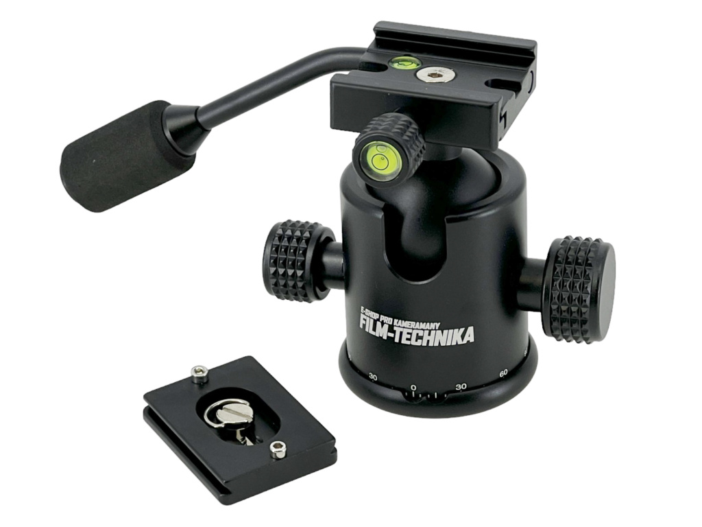 FILM-TECHNIKA kulová hlava s extrémní nosností až 20kg. Standardní Arca Swiss destička (4x5cm) a odnímatelnou rukojetí pro situace, kdy je potřeba plynule otáčet v horizontální ose. Hlava je tak ideální pro focení a částečně video, neboť horizontální otáčení je fluidní.