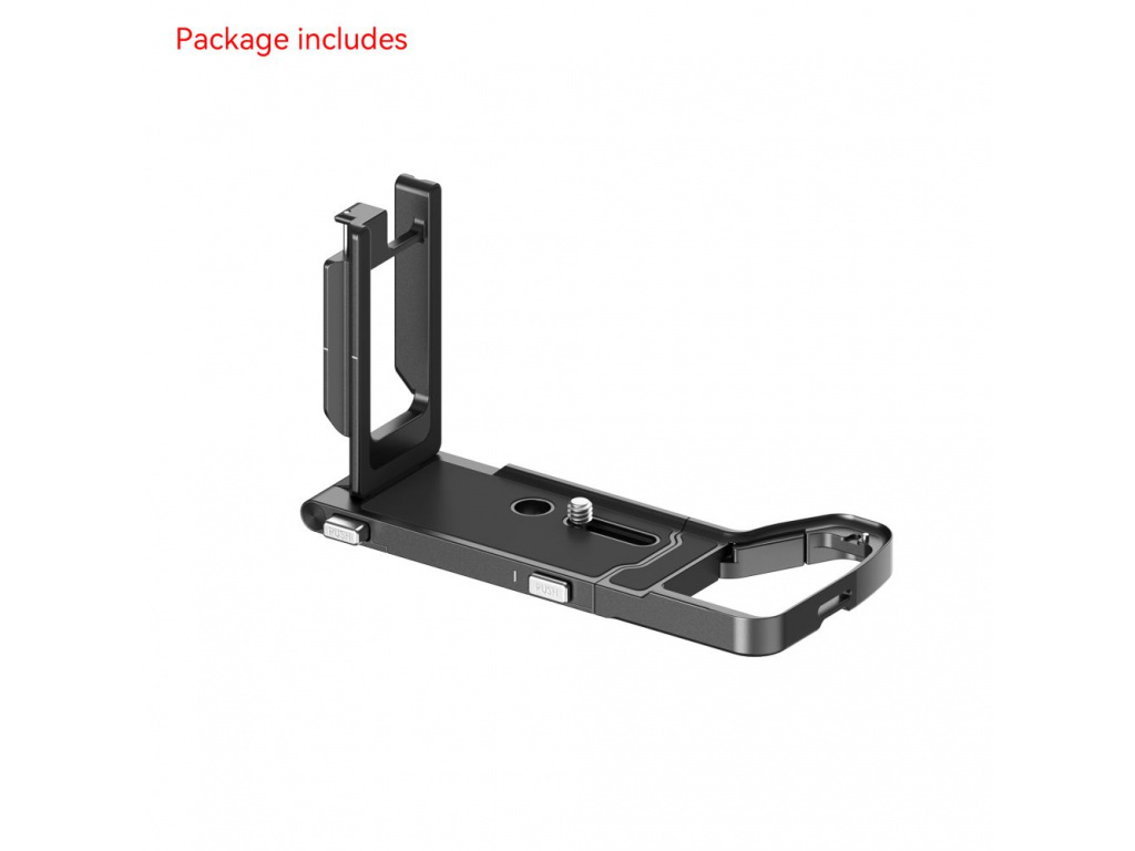 SmallRig skládací L-tvar montážní deska pro Sony Alpha 7R V / Alpha 7 IV / Alpha 7S III 3984 usnadňuje rychlé přepínání mezi horizontálním a vertikálním fotografováním při zachování přístupu k LCD flip obrazovce. Bočnice Arca-Swiss se rychle sklopí na spodní stranu pomocí sklopného tlačítka pro horizontální fotografování a uloží se jako jeden přenosný kus příslušenství a základovou desku lze natáhnout pro vertikální fotografování, aby byl umožněn přístup kabelů. Uzamčení fotoaparátu pomocí šroubu 1/4"-20 a upevňovacích kolíků ve spodní části, držák L je vybaven polštáři, které zabraňují poškrábání a zkroucení, stejně jako rameno závěsu na dvířkách baterie, které se hodí k zakřivení fotoaparátu a zlepšuje zážitek z úchopu. V základní desce je k dispozici několik 1/4"-20 závitových otvorů pro Magic Arm 3873 a Cold Shoe 2935 pro monitor, mikrofon a další příslušenství ve video produkci, otvor pro řemínek na zápěstí a QD konektor pro rychlé připevnění ramenního popruhu QD a popruhu na zápěstí a štěrbinový šroubovák pro montáž či demontáž.