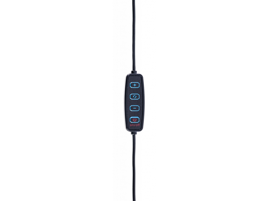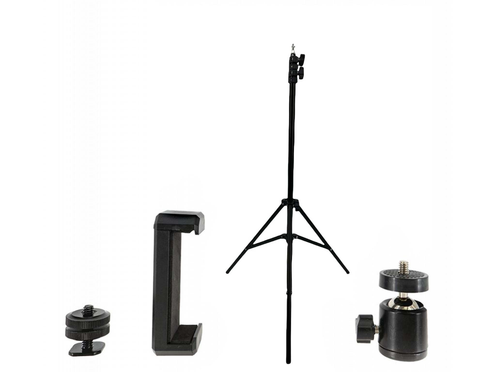 8" kruhové světlo se stativem, držák na telefon a USB napojením. Lze tedy napájet ze sítě (adaptér není součástí balení, ale lze použít klidně zdroj od mobilního telefonu s USB), nebo USB portu třeba v počítači. 8" postačí na přisvícení ze vzdálenosti do jaké přibližně natáhnete svoji ruku. Na různé streamování, kdy promlouváte ke svým sledujícím na instagramu to bohatě postačí. Světlo obsahuje 3 x "coldshoe", což jsou takové sáňky, do kterých můžete nasadit směrový mikrofon, nebo přiložený držák na telefon.