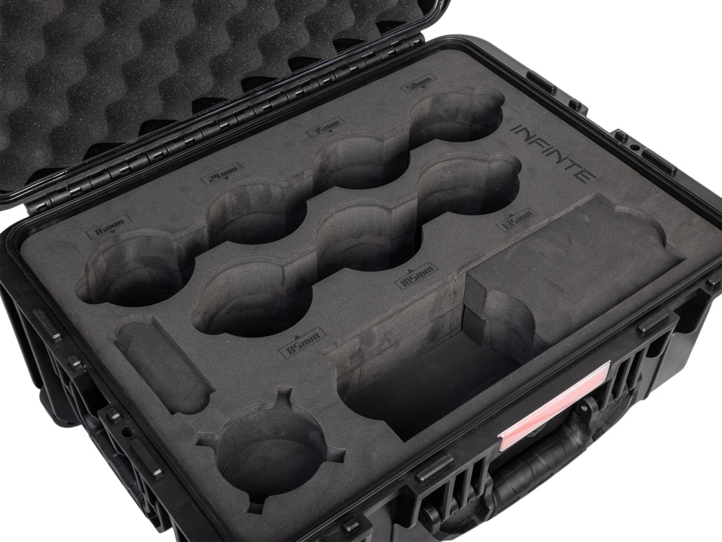Ochranný kufr 7Artisans INFINTE představuje ideální řešení pro přepravu i dlouhodobé skladování objektivů řady INFINTE a HOPE. Je vyroben z odolného materiálu, který spolehlivě chrání citlivou optiku před nárazy, vlhkostí a prachem. Vnitřní rozměry 51 × 38 × 11 cm poskytují dostatek prostoru pro několik objektivů, které jsou díky tvarovatelné pěnové výplni pevně a bezpečně fixovány.