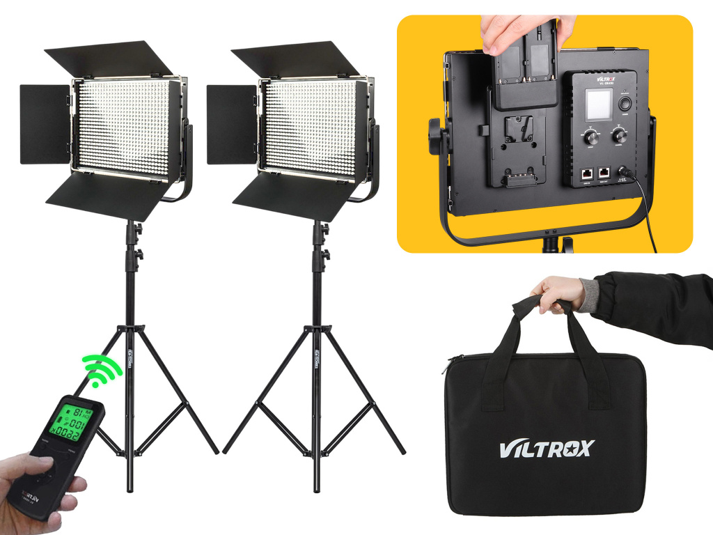 Set 2x Viltrox LED video světlo VL-D60B (5600K) + 2,6m stativy Celkový jas 14 000 lumenů, CRI95+, Stativy v ceně