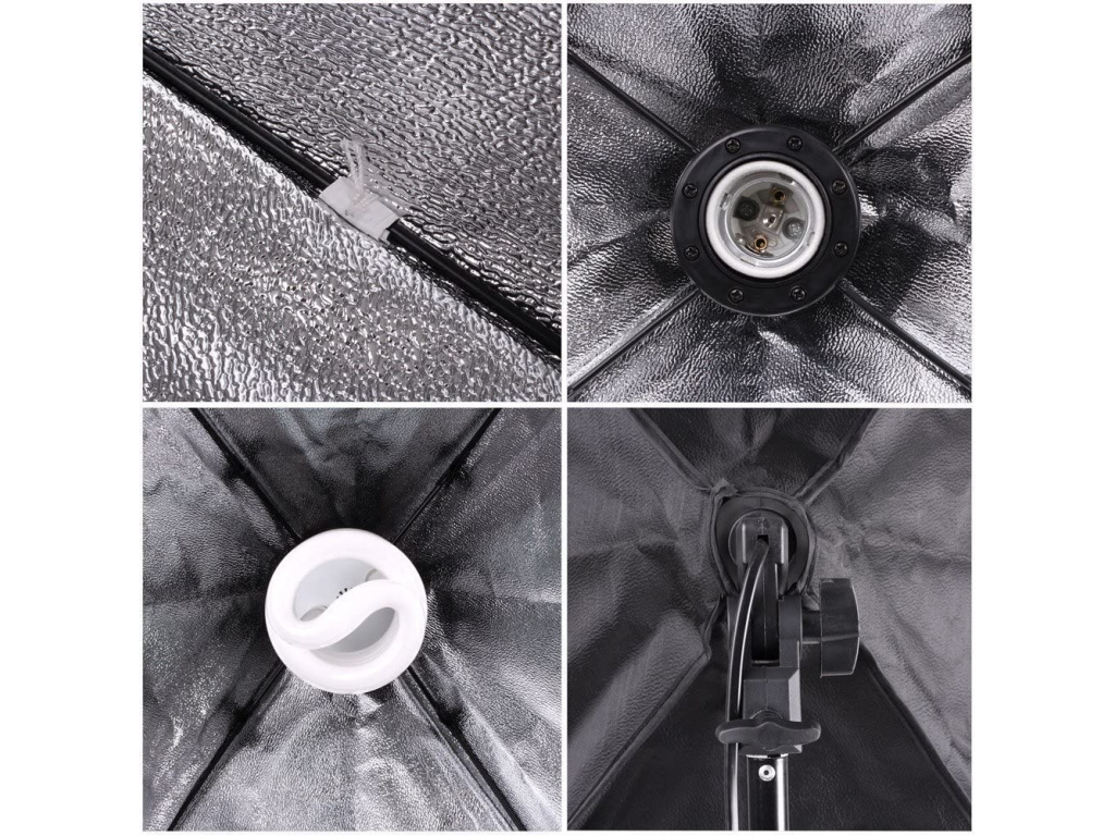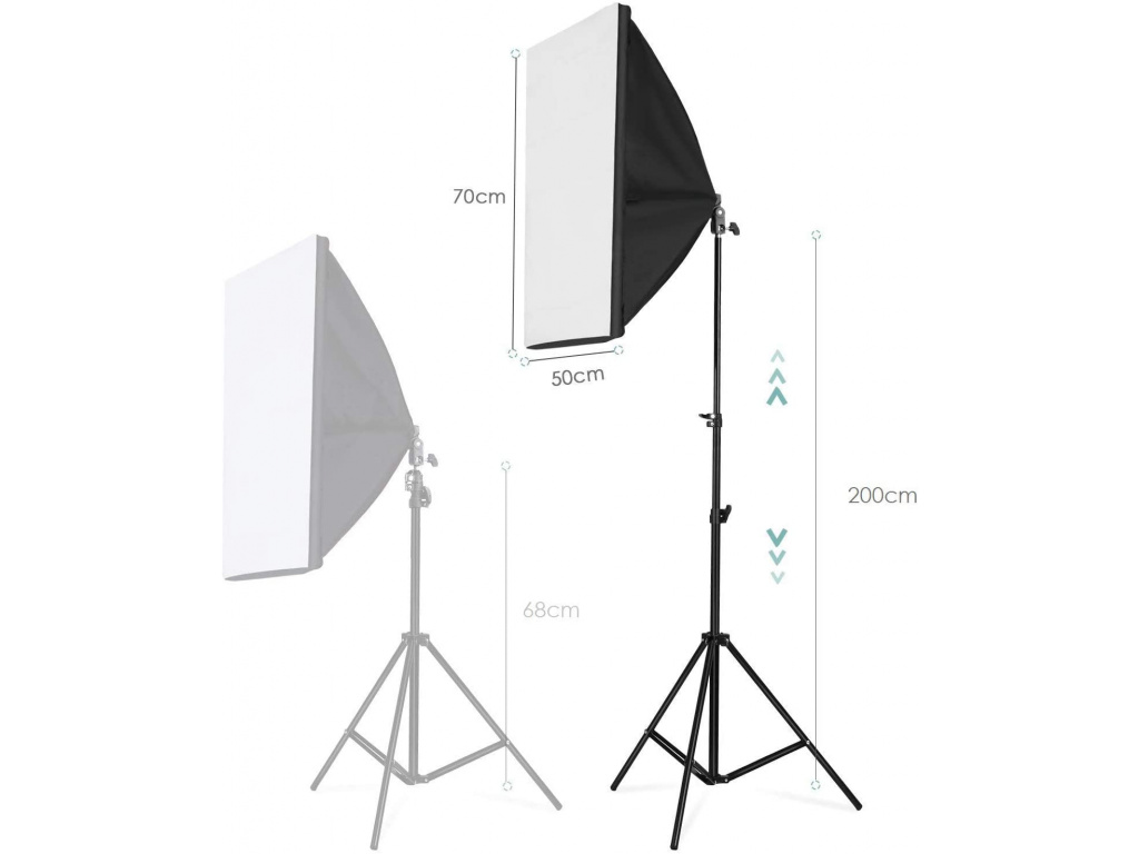 Velice výkoný softbox, který vytváří velice přirozené denní světlo s teplotou 5500K. Je dodáván s 1 x 135W žárovkou a stativem. Softboxem můžete naklánět v rozmezí 210° a výšku hliníkového stativu můžete nastavovat od 68 cm do 200 cm.