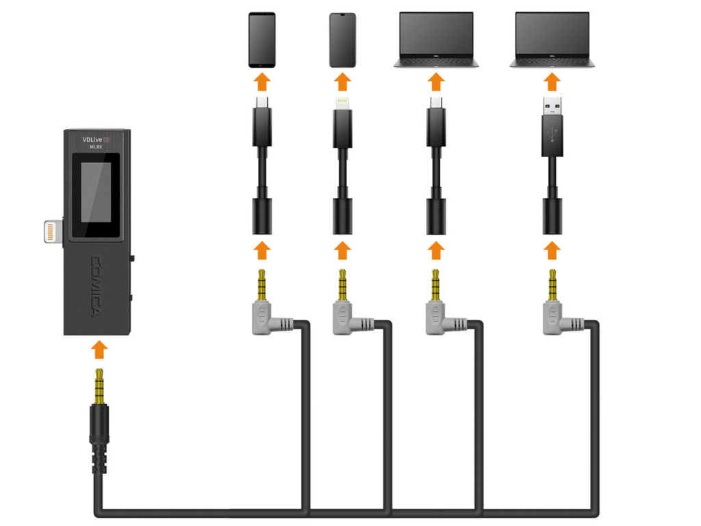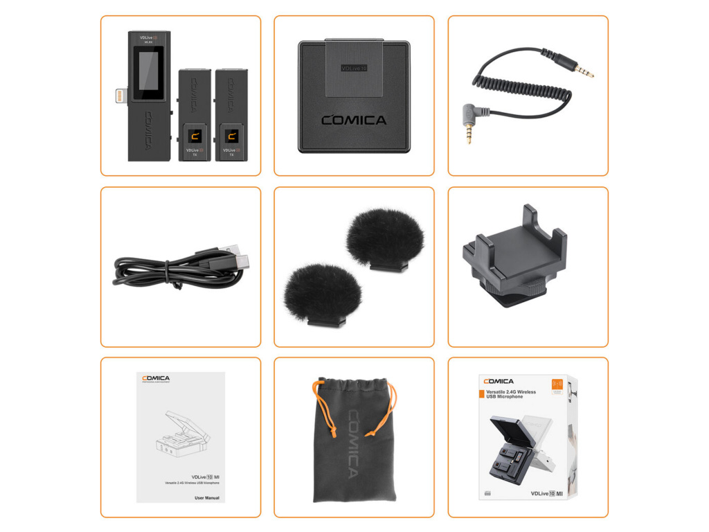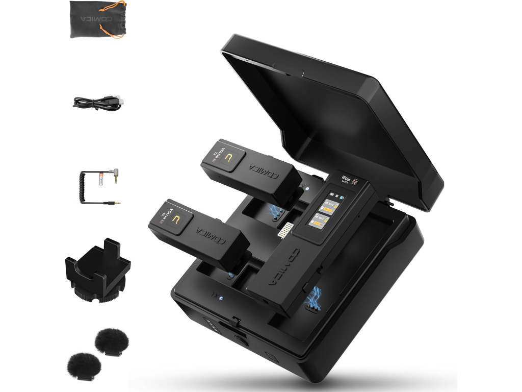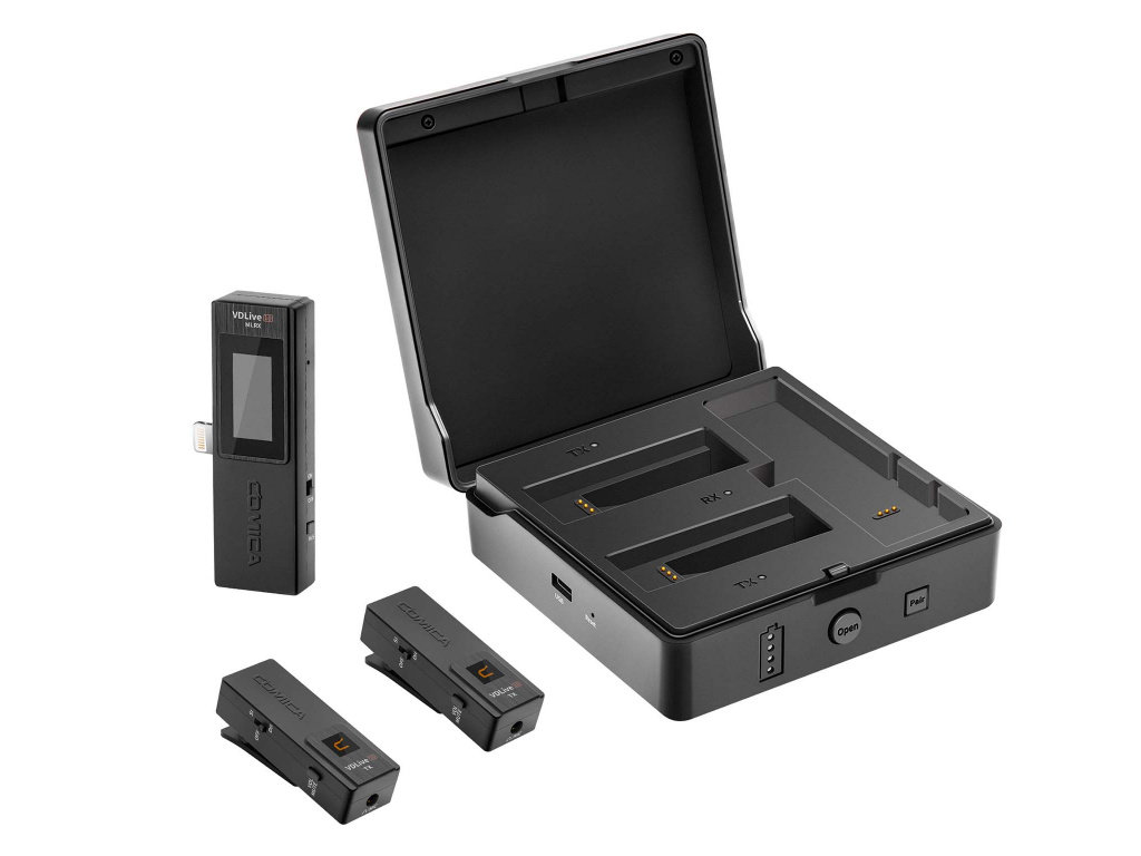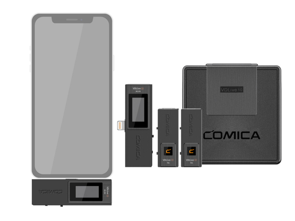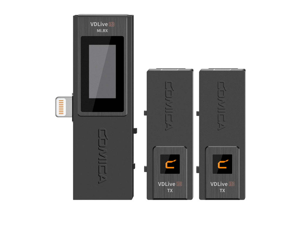 Comica VDLIVE 10 je profesionální bezdrátový mikrofón určený jak pro smartphone, tak i majitele fotoaparátů, či videokamer. Přijímač totiž obsahuje koncovku pro iPhone (Apple Lightning), ale zároveň zdířku na 3,5 mm jack pro zapojení přímo do kamery (kabel součástí balení). Aby to bylo dostatečně elegantní, Comica vytvořila dobíjecí stanici do které vložíte veškeré přijímače a vysílač a dobijete si vše pěkně najednou pomocí USB-C portu.