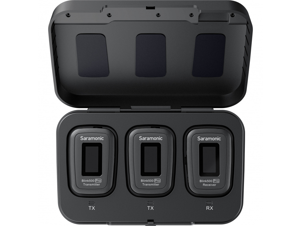 Bezdrátová audio sada Saramonic Blink 500 Pro B2 s jedním přijímačem a dvěma vysílači. Kvalitní a kompaktní sada Vám umožní bezdrátový přenos audio v pásmu 2,4 GHz do vzdálenosti až 100 metrů. Sada obsahuje dva vysílače s integrovanými všesměrovými mikrofony, můžete však využít i SR-M1 klopové mikrofony, které jsou obsahem balení. Přijímač obsahuje standardní 3,5 mm jack konektor a TRS kabel pro připojení ke kameře. Nechybí ani TRRS kabel pro připojení přijímače ke smartphonům nebo tabletům. Napájení přijímače a vysílačů je realizováno pomocí vestavěné Li-ion baterie, kterou dobijete pomocí dokovací stanice, která zároveň slouží jako ochranný obal pro uskladnění nebo převoz. Další chvályhodnou vlastností je automatický výběr vhodného kanálu, kdy přijímač sám vybere kanál, který je nejméně rušený. Cela sada je pak vhodná pro každodenní natáčení, vlogování, rozhovory, dokonce je tato sada ideální pro využití s gimbalem, díky své malé hmotnosti. Takže je jen na Vás kdy a kde ji využijete.