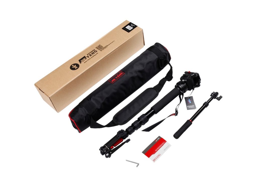 Profesionální monopod JY0506 je obdobou dražšího monopodu Manfrotto 561BHDV-1 (skoro jeho kopie). Ačkoliv kvalitový rozdíl oproti 561BHDV-1 poznáte ztěžka, JY0506 Vám nabízí pěti sekční základnu, kvalitní stativovou hlavu(včetně švenkovací kliky a vestavných vodováh), rychloupínací destičku, spodní pavouk pro zajištění maximální stabilizace a neméně důležitou přepravní brašnu. S jistotou můžeme říci, že tento monopod si oblíbí každý milovník sportovní fotografie.