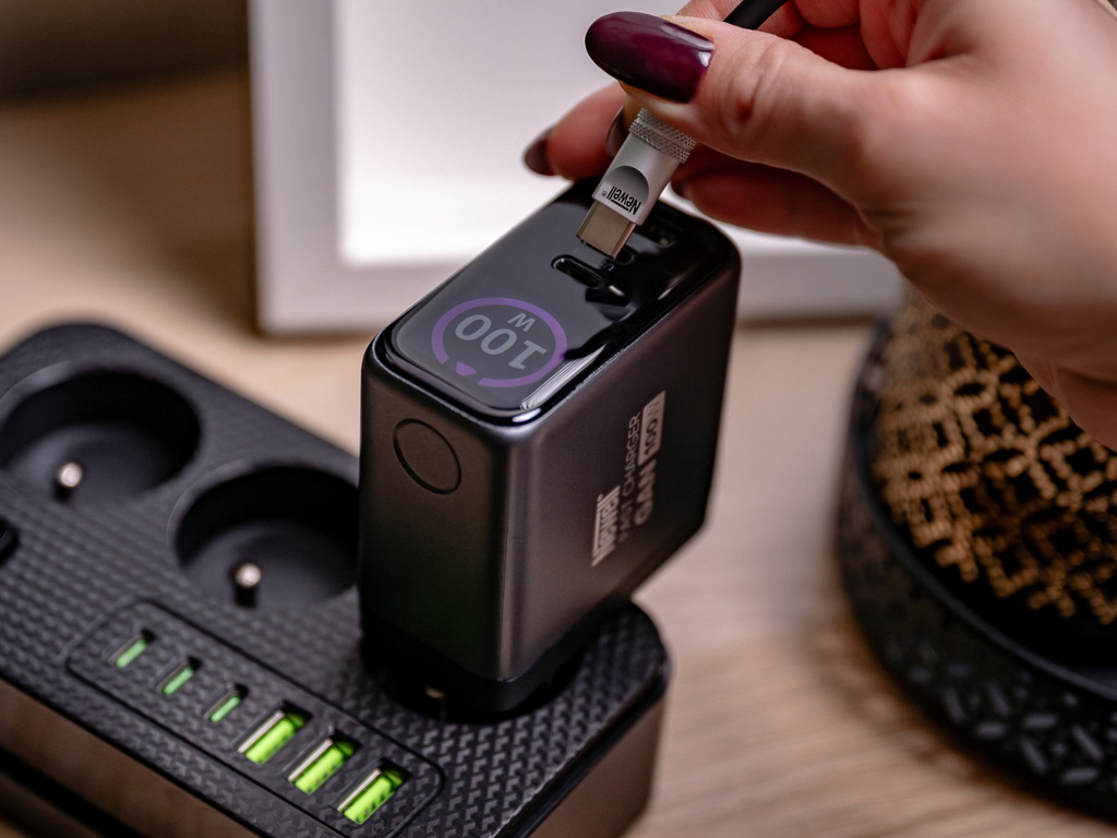 Newell GaN 100 W TFT – EU je nabíječka, která snadno zvládne i ty nejnáročnější zařízení. S maximálním výstupním výkonem 100 W dokáže napájet moderní notebooky, ultrabooky a dokonce i některé pracovní stanice a zároveň nabíjet další zařízení (např. tablety, telefony nebo powerbanky). Díky inteligentnímu rozdělení energie a podpoře protokolů rychlého nabíjení dostane každé připojené zařízení přesně tolik energie, kolik potřebuje, bez kompromisů nebo poklesů výkonu.