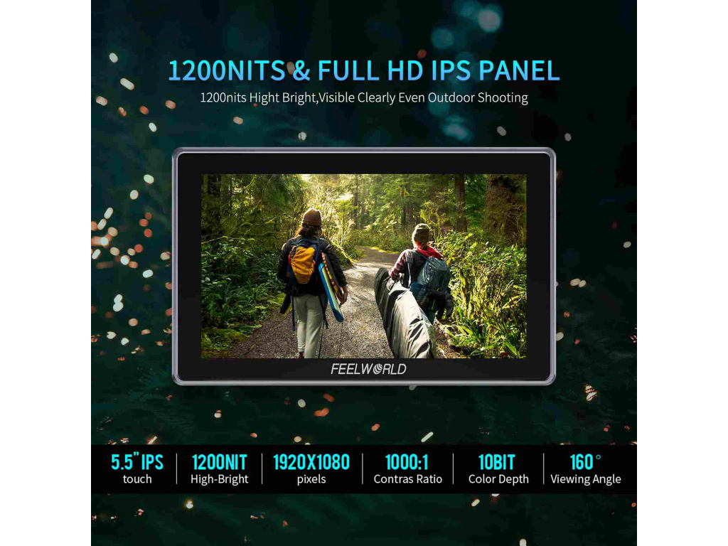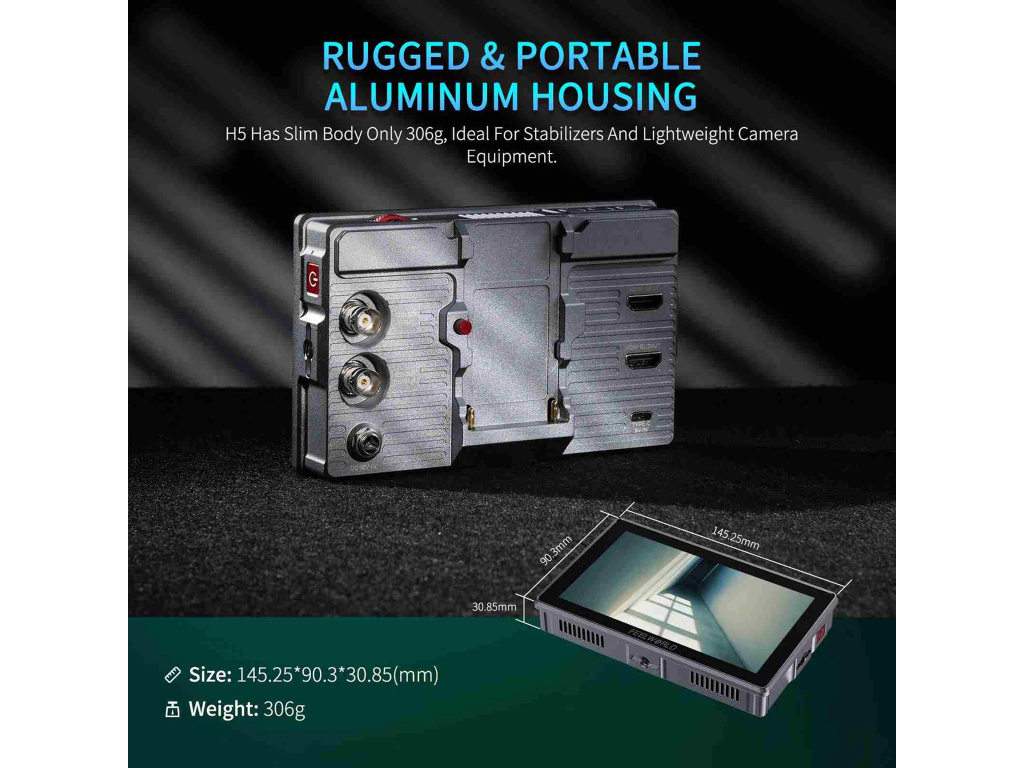 FEELWORLD H5 je přenosný 5,5palcový monitor 12G-SDI s vysokým jasem, podporuje formát až 2160p/60 a má řadu pomocných funkcí, které jsou ideální pro digitální kino, vysílání a živou produkci.