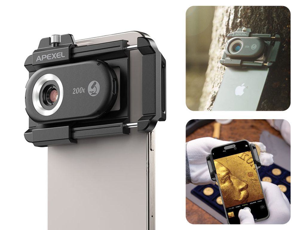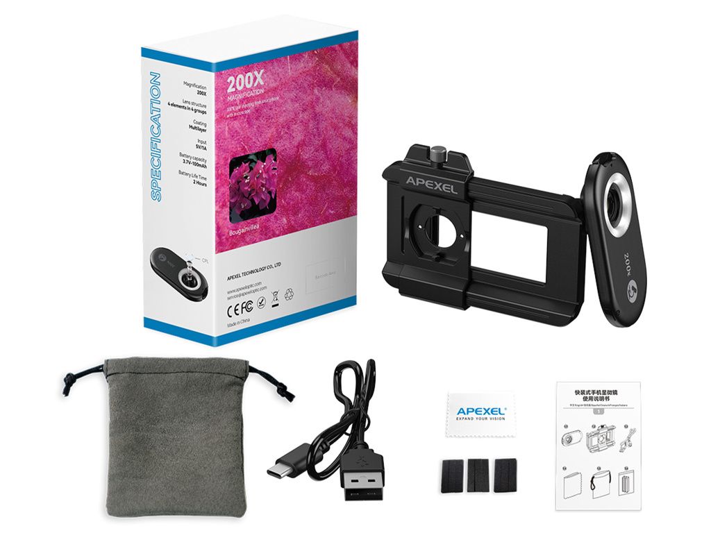 Apexel PhoneMicro 5 200x smartphone mikro čočka s LED světlem
