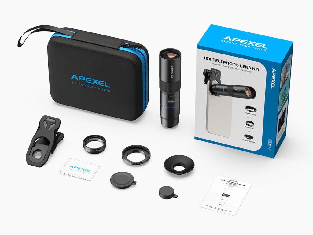 Apexel TeleMacro Pro 10X 2v1 tele a makro objektiv + Dálková spoušť součástí balení