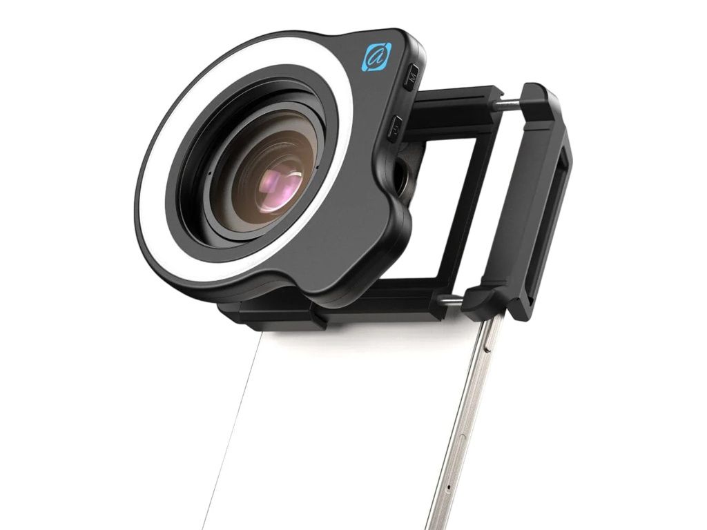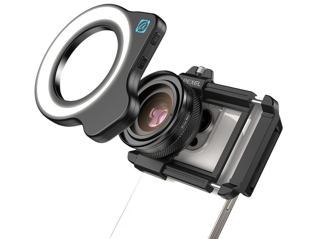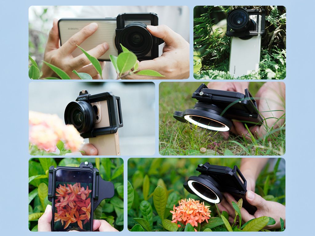 Apexel Zoom makro 10–20× objektiv s LED světlem pro smartphone umožňuje extrémní detailní makrofotografii s plynulým zoomem. Součástí je kruhové LED světlo s 45 režimy, 3 teplotami barev a nastavitelným jasem pro perfektní osvětlení detailů. Ideální pro focení hmyzu, šperků i produktů.