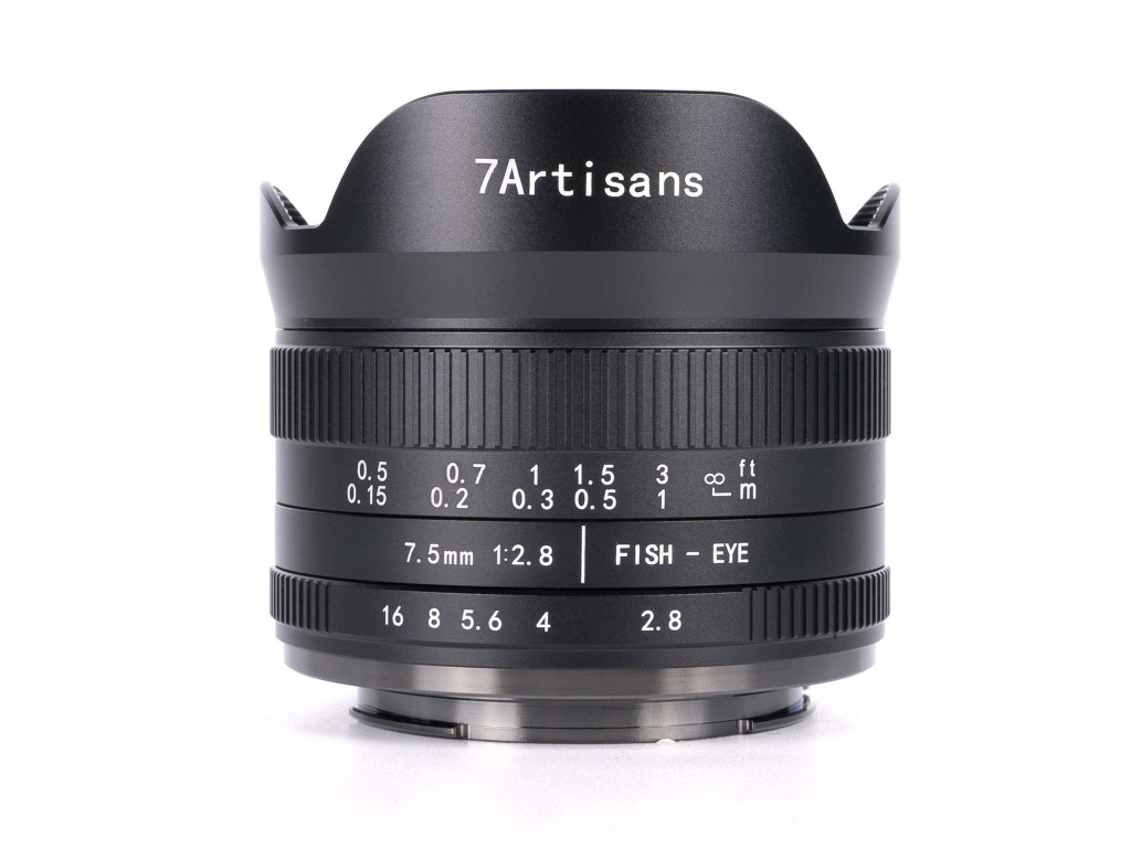 Širokoúhlý APS-C objektiv typu "Rybí oko" 7,5 mm od společností 7Artisans. Optická konstrukce objektivu se skládá z 11 prvků v 9 skupinách, ovladatelný rozsah clony je od f/2,8 do f/16. Objektiv disponuje 190° pozorovacím úhlem, 7-lamelovou clonou a manuální clonou/ostřením. Minimální zaostřovací vzdálenost je 15 cm.