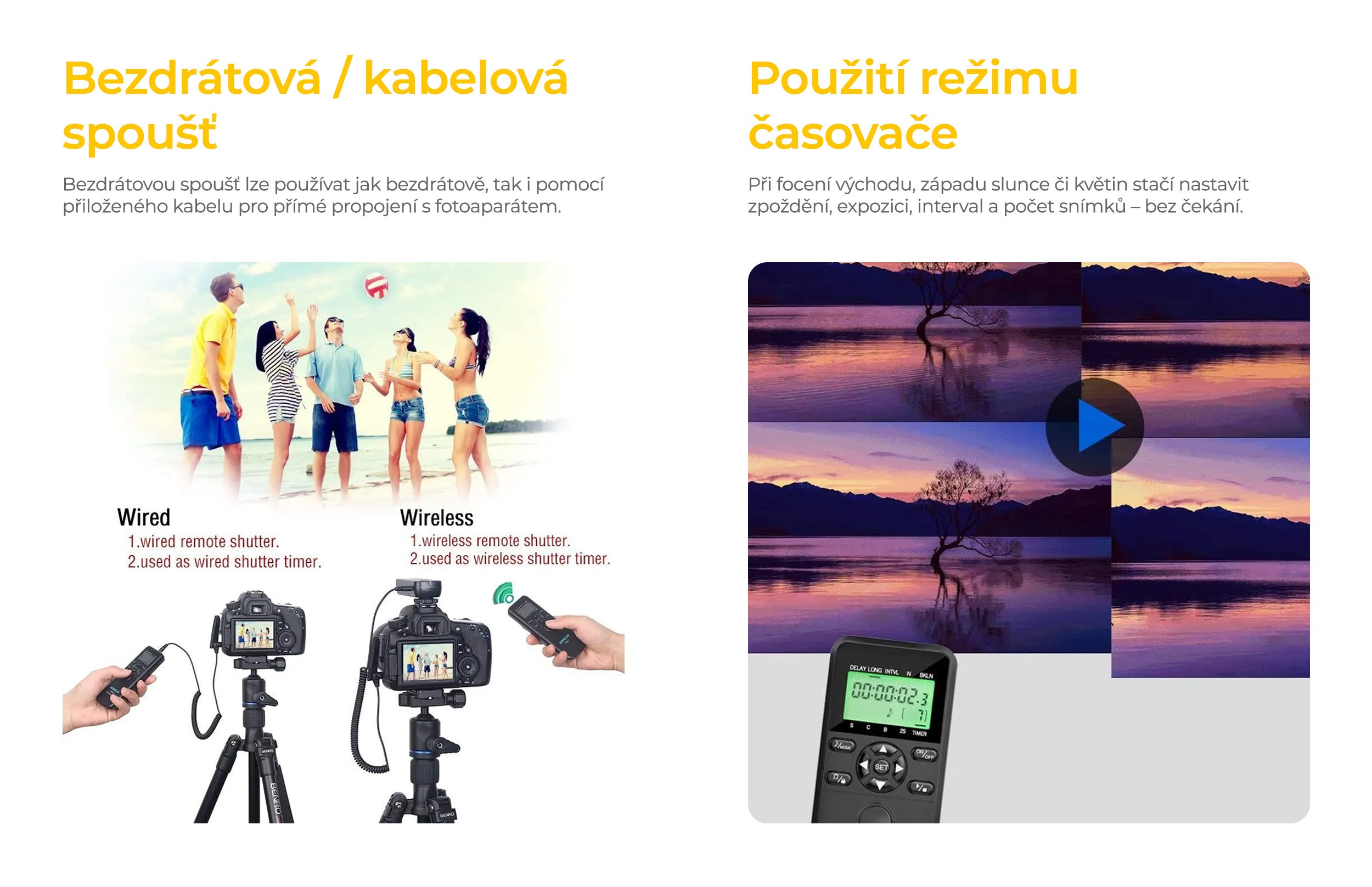 | Zpoždění spouště: | 0,1 s – 99 h 59 min 59,9 s (nastavitelně po 0,1 s) |