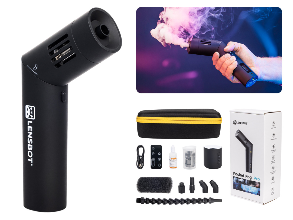 LENSBOT Pocket Fog Pro přenosný generátor kouře 40W, LCD displej, ventilátor, RGB světlo