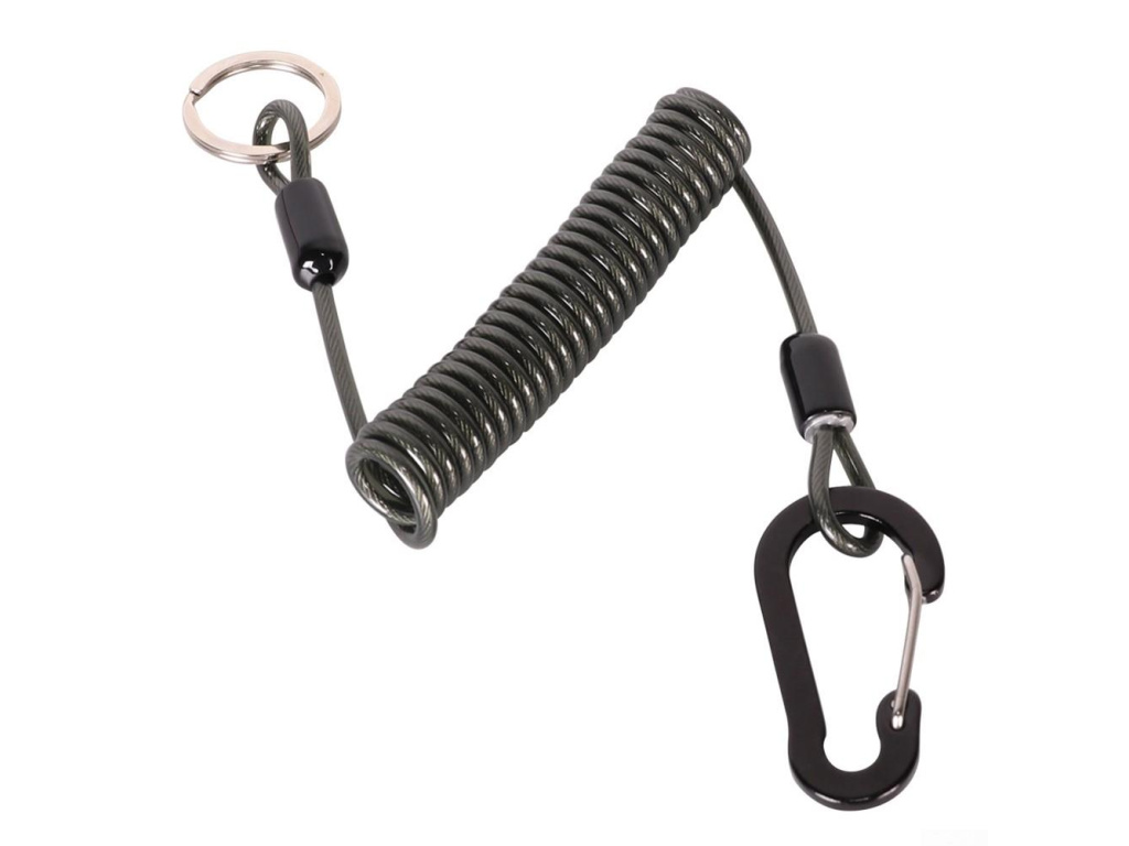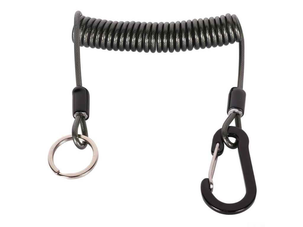 Spirálové pojistné lanko s karabinou a kroužkem pomáhá zabezpečit drobné vybavení proti ztrátě při používání i přenášení. Díky pružnému spirálovému provedení se pohodlně natahuje a je vhodné například pro klíče, rybářské příslušenství, nářadí nebo další doplňky.