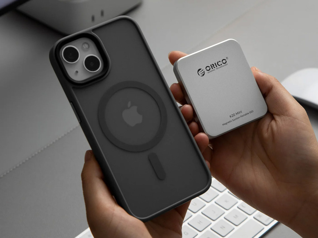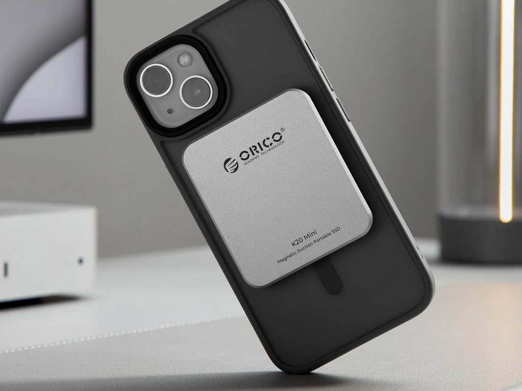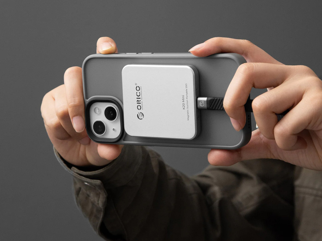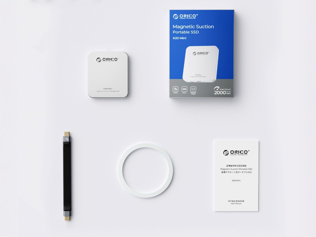 ORICO K20 Mini 20Gbps 2TB ultratenký magnetický SSD – externí disk pro iPhone ProRes, Android a kameramany (stříbrný)