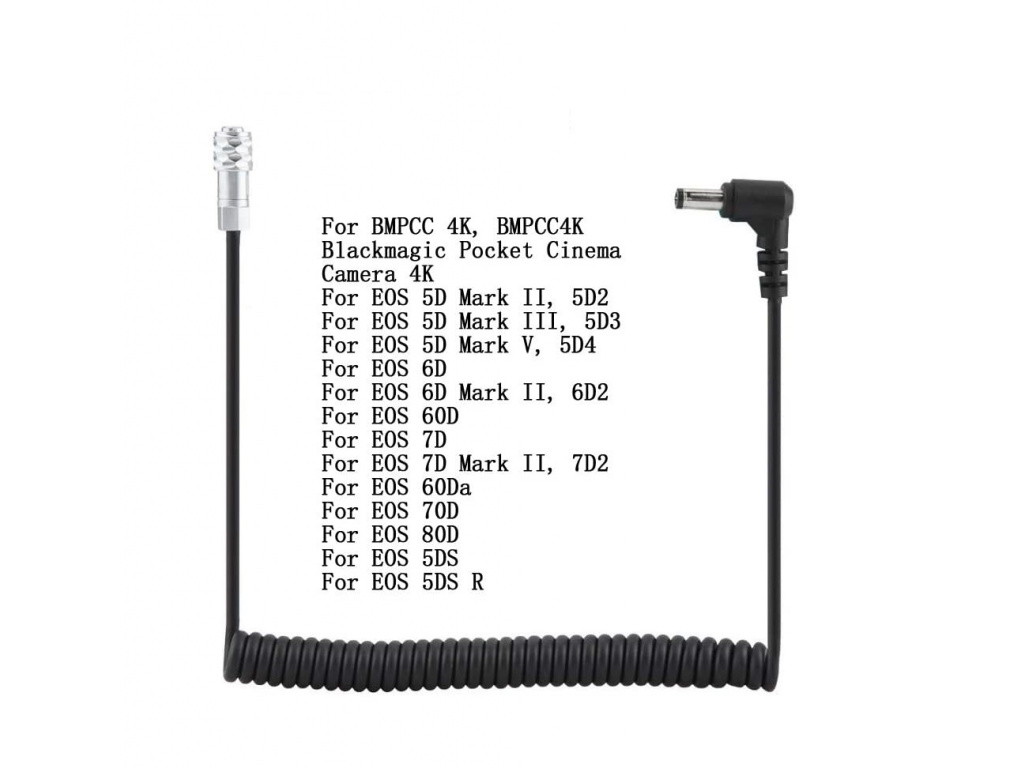 Kabel zasilający BMPCC 4K/6K. DC 5.5 x 2.5mm lub także dla 5.5 x 2.1mm. Można użyć także do zasilania kamery z gimbala Moza Air 2.