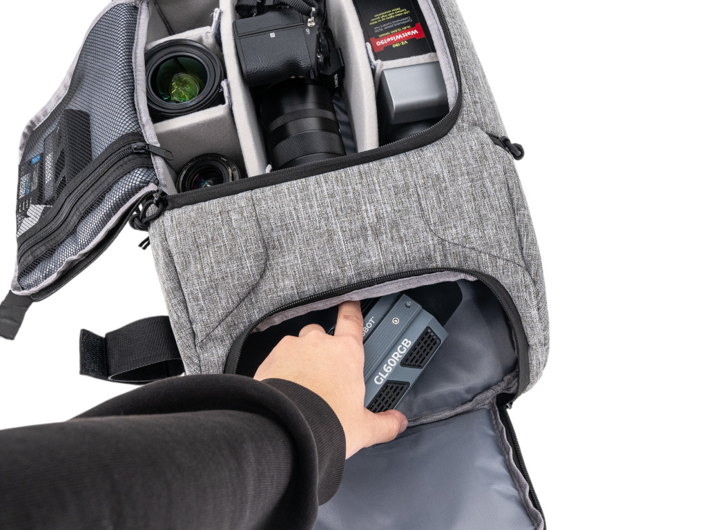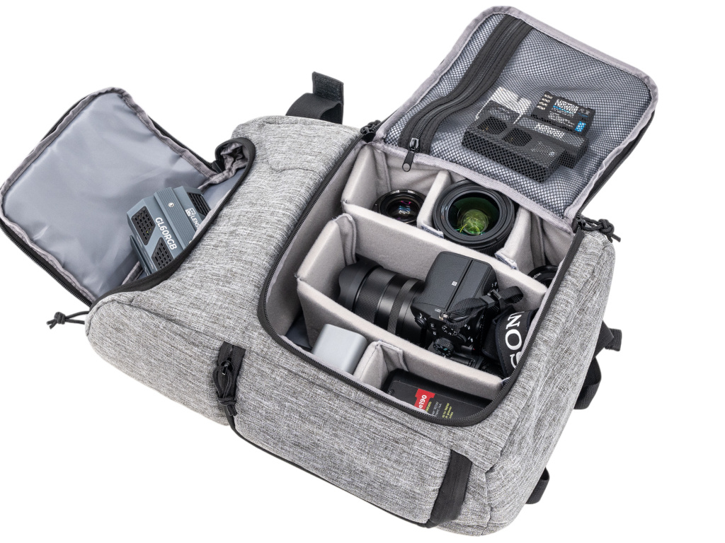 Plecak posiada wystarczająco dużo miejsca do przechowywania aparatu cyfrowego, obiektywów, statywu i innych akcesoriów. Wewnętrzną organizację zapewniają trzy długie i cztery krótkie wyjmowane przegródki, które umożliwiają dostosowanie przestrzeni do potrzeb i chronią sprzęt przed wstrząsami. Dwie oddzielne przegródki i modułowa wkładka wewnętrzna z wyściółką zapewniają elastyczne rozmieszczenie różnych aparatów, obiektywów, lamp błyskowych lub dronów.