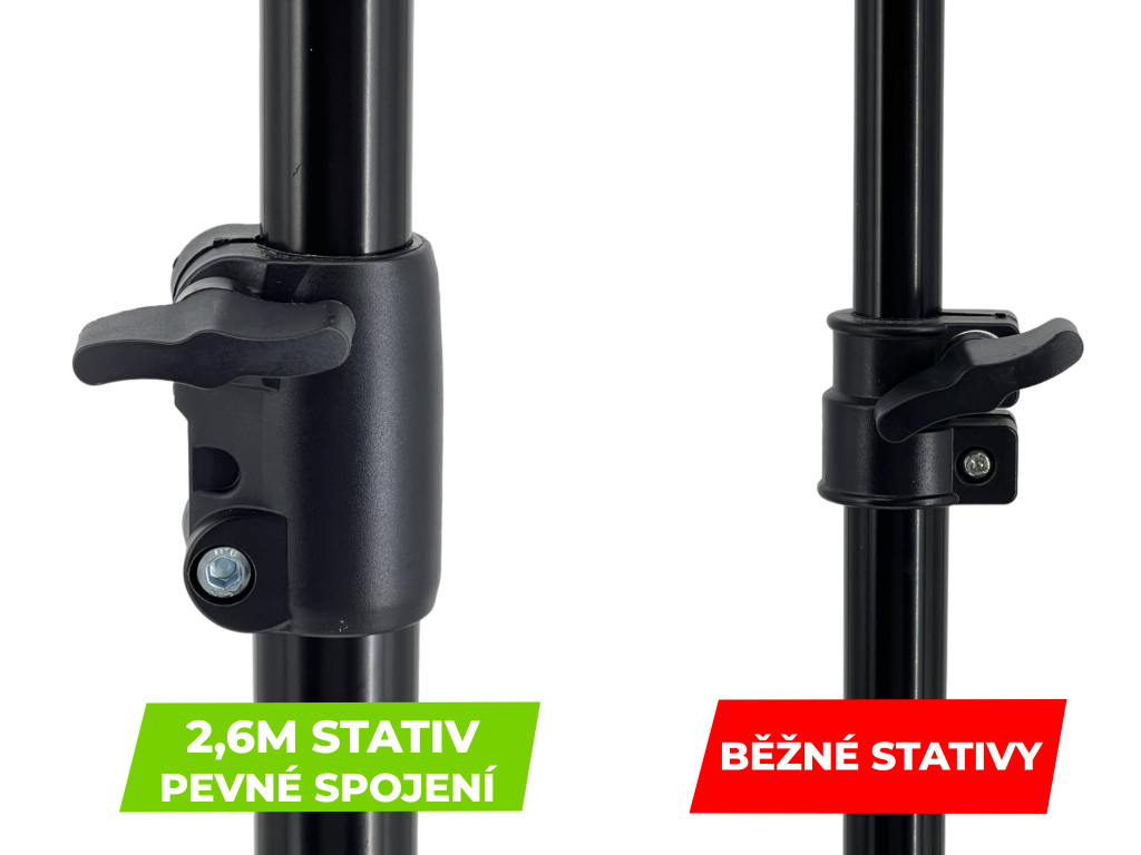 Statyw o nośności do 10 kg i wysokości 2,6 metra. Idealny do większości paneli LED i świateł COB. Łączniki ABS i pneumatyczny system amortyzacji w celu ochrony przed wstrząsami.