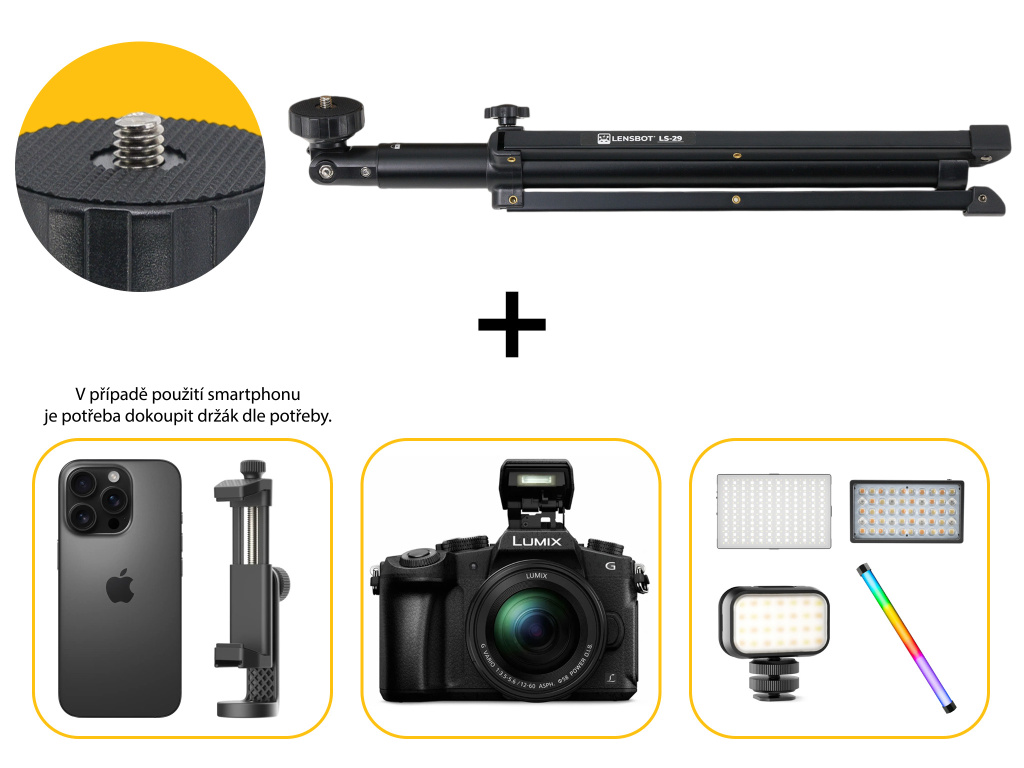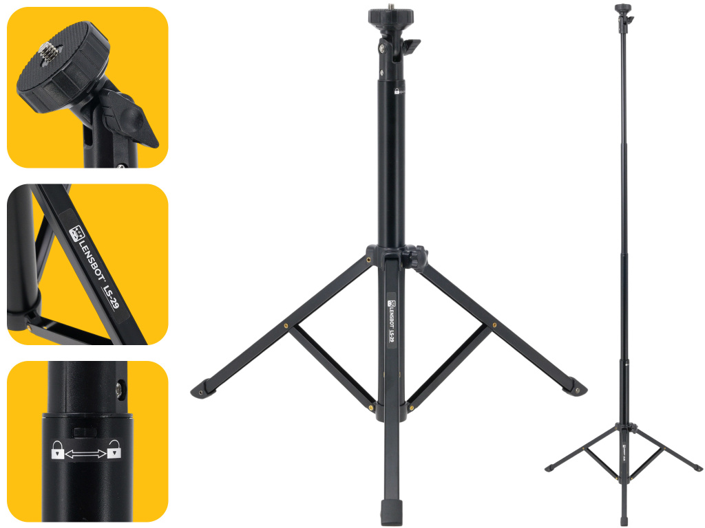 (ZÁVADA) LENSBOT LS-29 - Lekki uniwersalny, szybkoskładany statyw do świateł, kamer i smartfona Uniwersalny statyw z gwintem 1/4", wysokość 145 cm