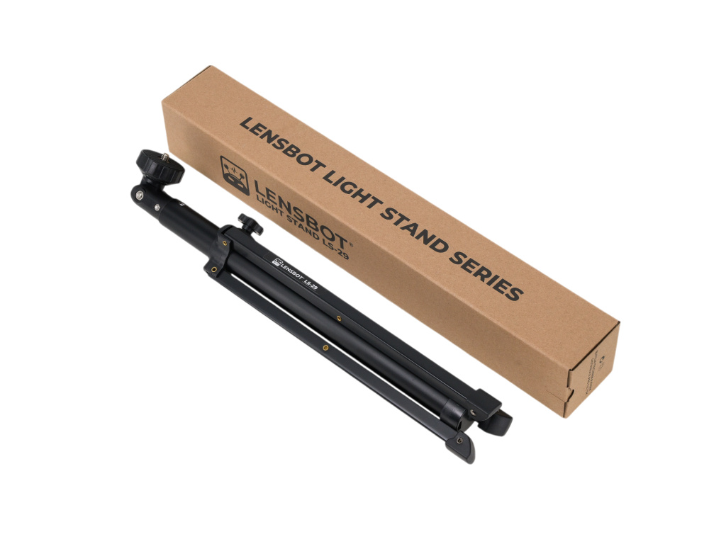 LENSBOT LS-29 to ultra-kompaktowy statyw o wysokości 145 cm, idealny do lamp pierścieniowych, lamp LED lub w połączeniu z uchwytem na smartfona może być używany jako statyw do telefonów komórkowych. Statyw składa się na lewą stronę, co maksymalnie zmniejsza jego rozmiar. W złożonym stanie statyw ma tylko 40 cm.