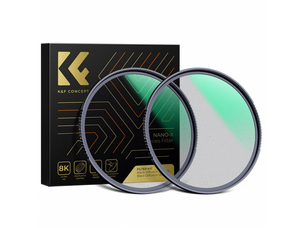 Profesjonalny filtr do zdjęć portretowych lub wideo. Ten filtr dyfuzyjny 1/4 i 1/8 potrafi zmiękczyć zmarszczki, piegi i pory skóry twarzy. Obraz jest dzięki temu delikatniejszy, twarz pełniejsza i piękniejsza. Dodatkowo filtry można nakładać na siebie. Niemniej jednak filtry te muszą być produkowane w wysokiej jakości, ponieważ mają "zamierzoną" degradację jakości. Aby zapewnić jakość obrazu w ultra wysokiej rozdzielczości, zastosowano proces podwójnego polerowania, aby zapewnić wysoką rozdzielczość w zakresie ogniskowej 550 mm. To bardzo wysokiej jakości filtry Black Mist marki K&F Concept - producenta filtrów premium.