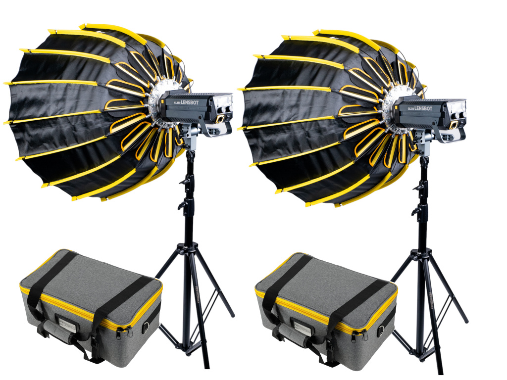 Zestaw dwóch lamp LENSBOT GL330 COB LED (2 x statyw, 2 x softbox 90cm) 330W, 128000 luxů na 1 metr, Bi-Color, Smartphone app