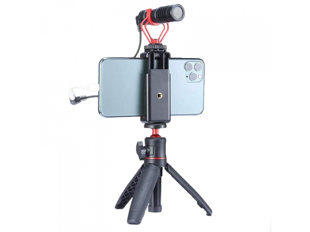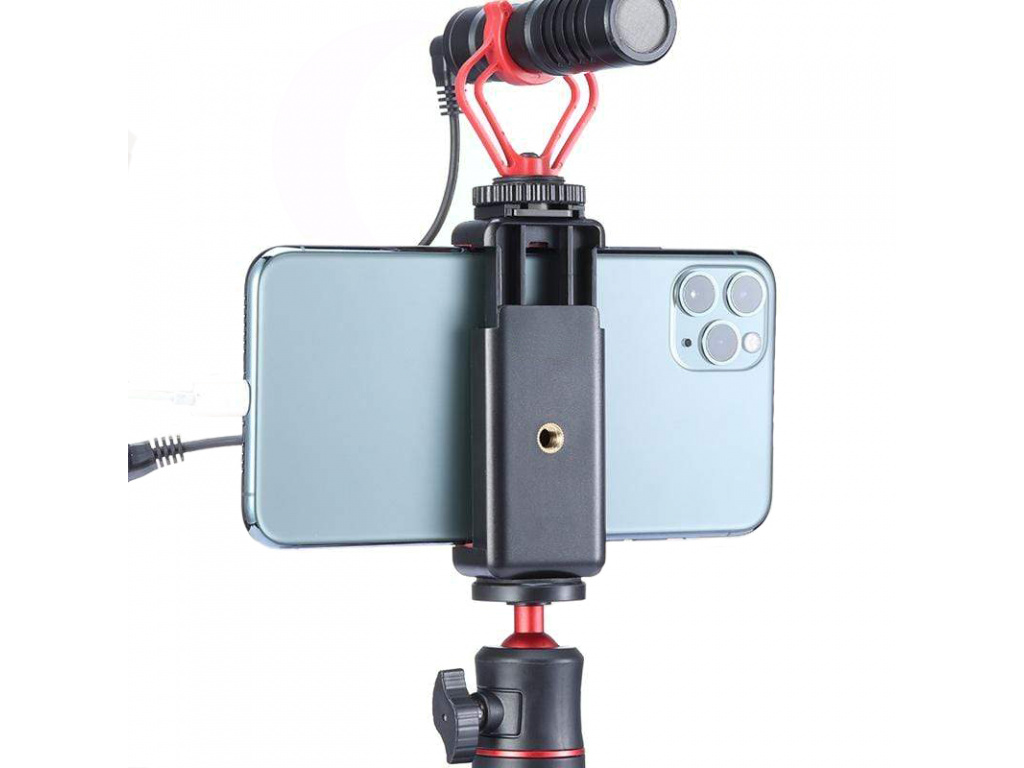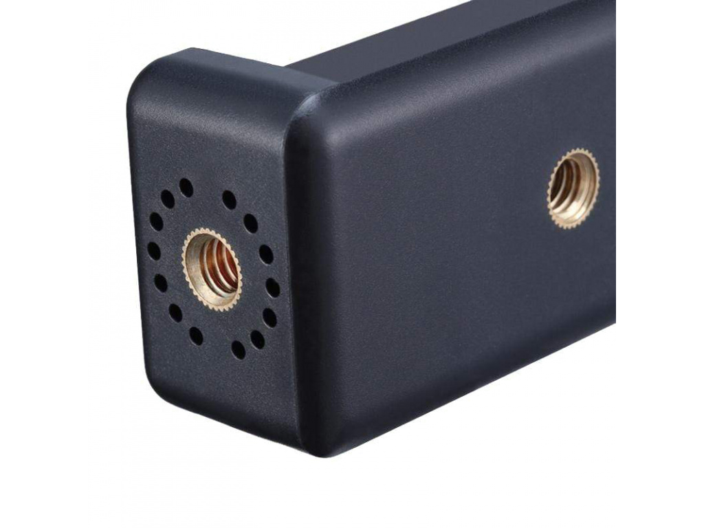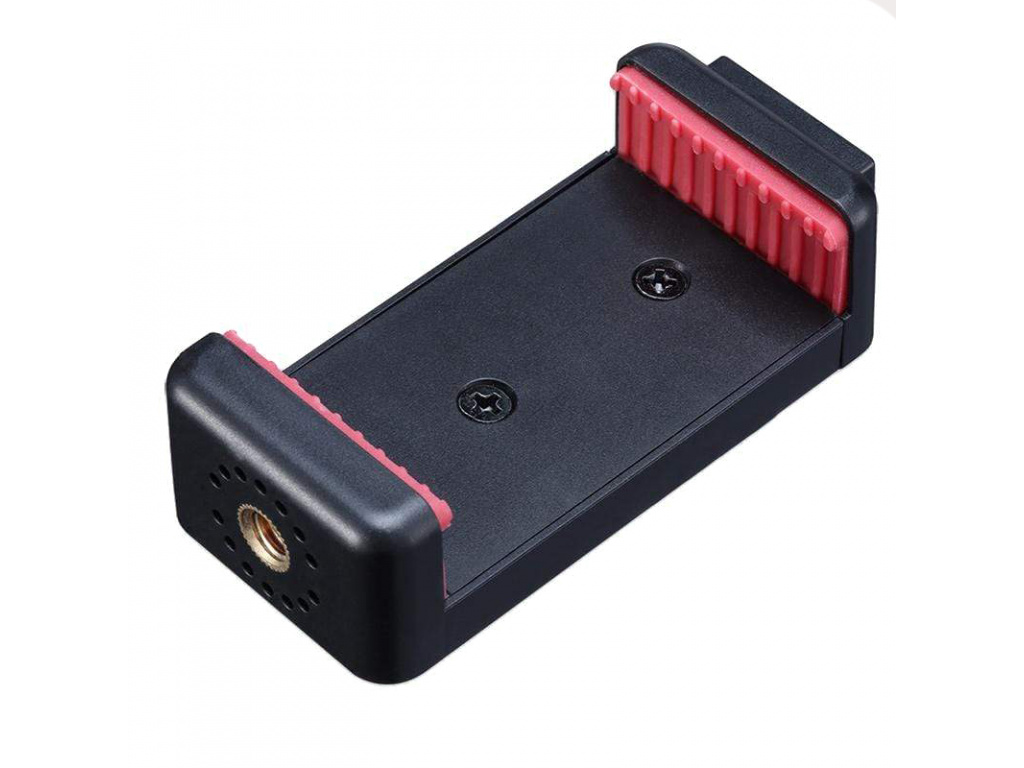 Uchwyt do vlogowania dla smartfonów od 59 mm do 82 mm. Uchwyt zawiera dolny i boczny gwint 1/4" dla łatwiejszego podłączenia do zewnętrznych akcesoriów, górna część zawiera nawet sanki do podłączenia mikrofonu lub światła LED. Wewnętrzna strona uchwytu jest pokryta gumą, dzięki czemu Twój smartfon nie będzie się ślizgał i nie zostanie porysowany. Bardzo łatwe i szybkie mocowanie smartfonu na statywie, selfie sticku i innych akcesoriach.
