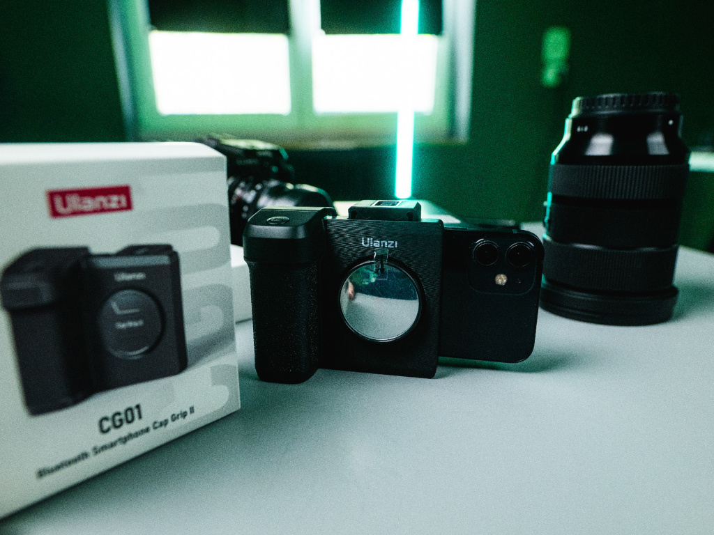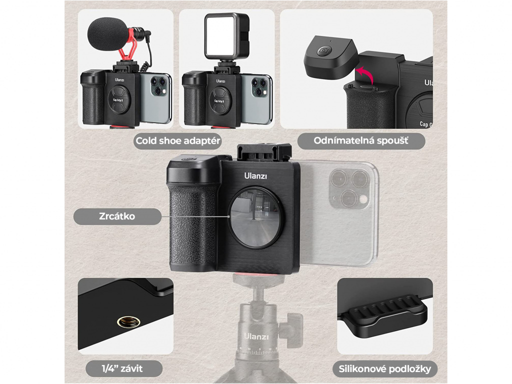 Cold shoe na górze uchwytu umożliwia zamontowanie zewnętrznego światła LED lub mikrofonu.