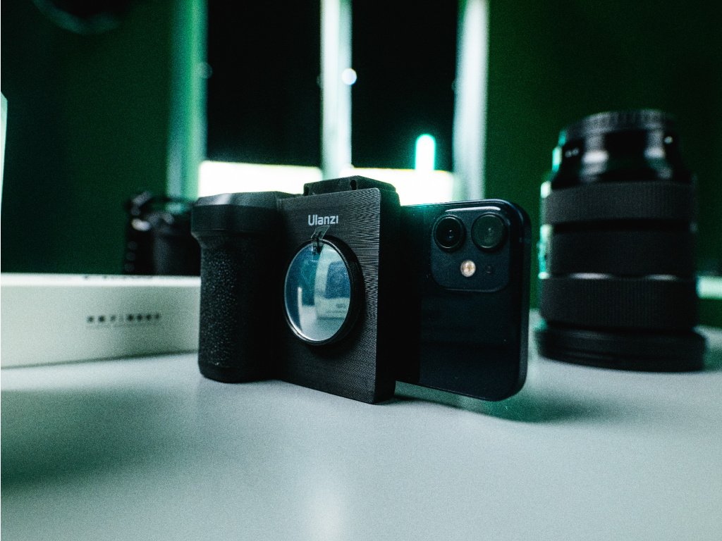 Migawka aparatu smartfona ma wbudowane magnetyczne okrągłe lusterko, które ma 10-krotny efekt powiększenia szerokokątnego.