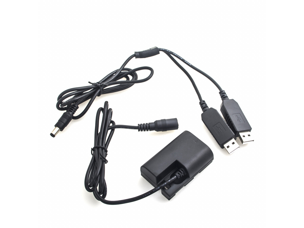 Bateria Dummy służy do tzw. niekończącego się zasilania kamer. Wystarczy włożyć baterię Dummy do komory kamery zamiast standardowej baterii do ponownego ładowania, a drugi koniec można podłączyć do akumulatora lub urządzenia ze złączem USB. Szybki i bezpieczny sposób zasilania kamery bez baterii.