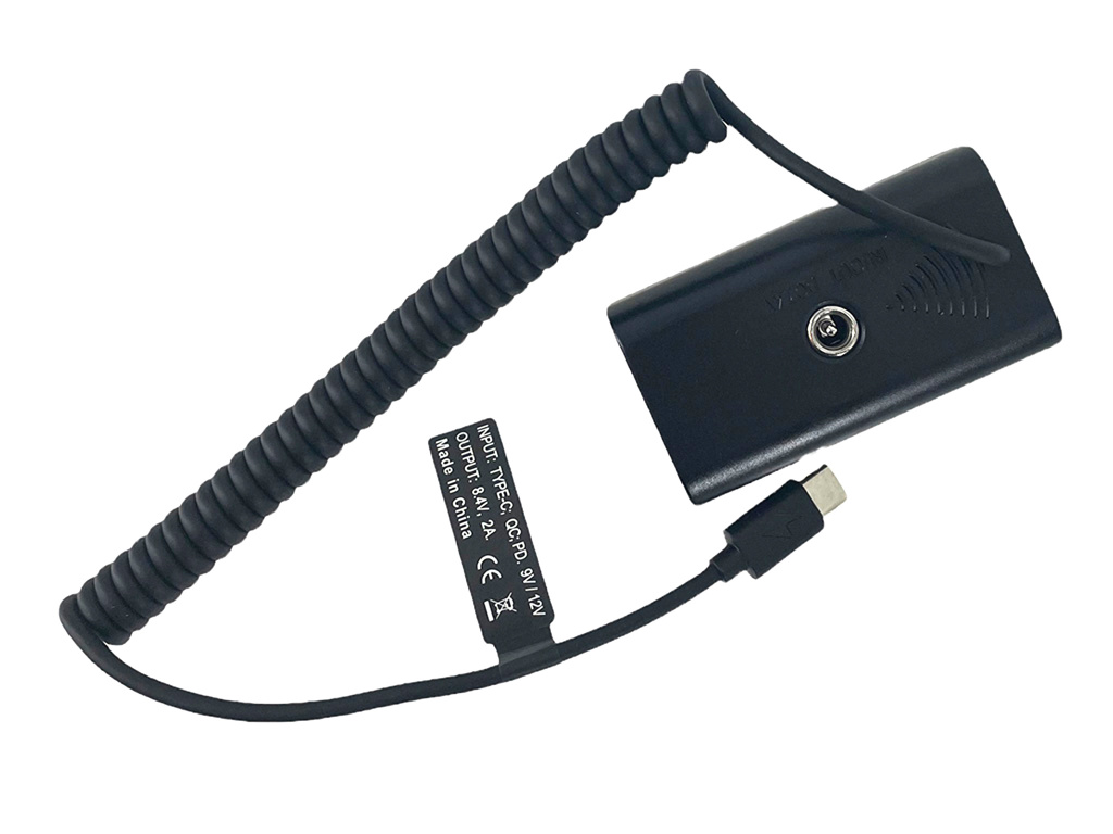 Bateria Dummy służy do tzw. niekończącego się zasilania sprzętu kamerowego, wystarczy włożyć baterię Dummy do przegródki zamiast standardowej baterii do ładowania i podłączyć przez USB-C do powerbanku. Szybki i bezpieczny sposób zasilania kamery bez baterii.