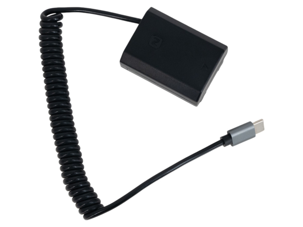 Bateria Dummy służy do tzw. niekończącego się zasilania kamer. Wystarczy włożyć baterię Dummy do przegródki kamery zamiast standardowej baterii do ładowania, a drugi koniec można podłączyć przez USB-C do powerbanku. Szybki i bezpieczny sposób zasilania kamery bez baterii.