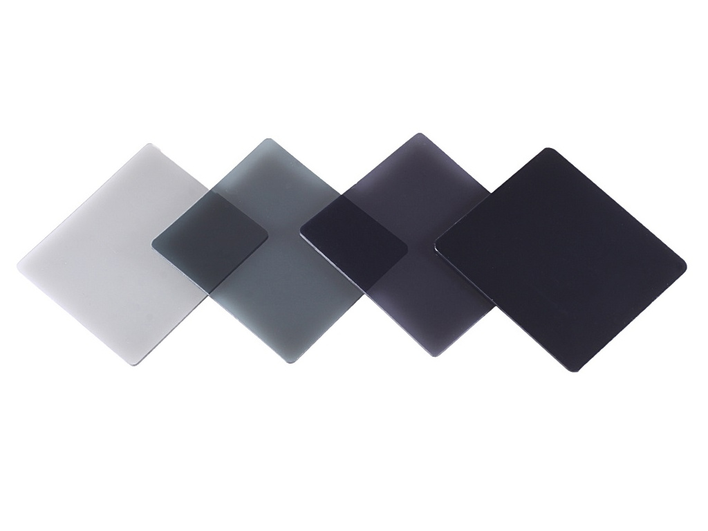 Prostokątny filtr ND COMMLITE ND2 do wkładania do matte boxu o wymiarach 8,5 x 9,5 cm
